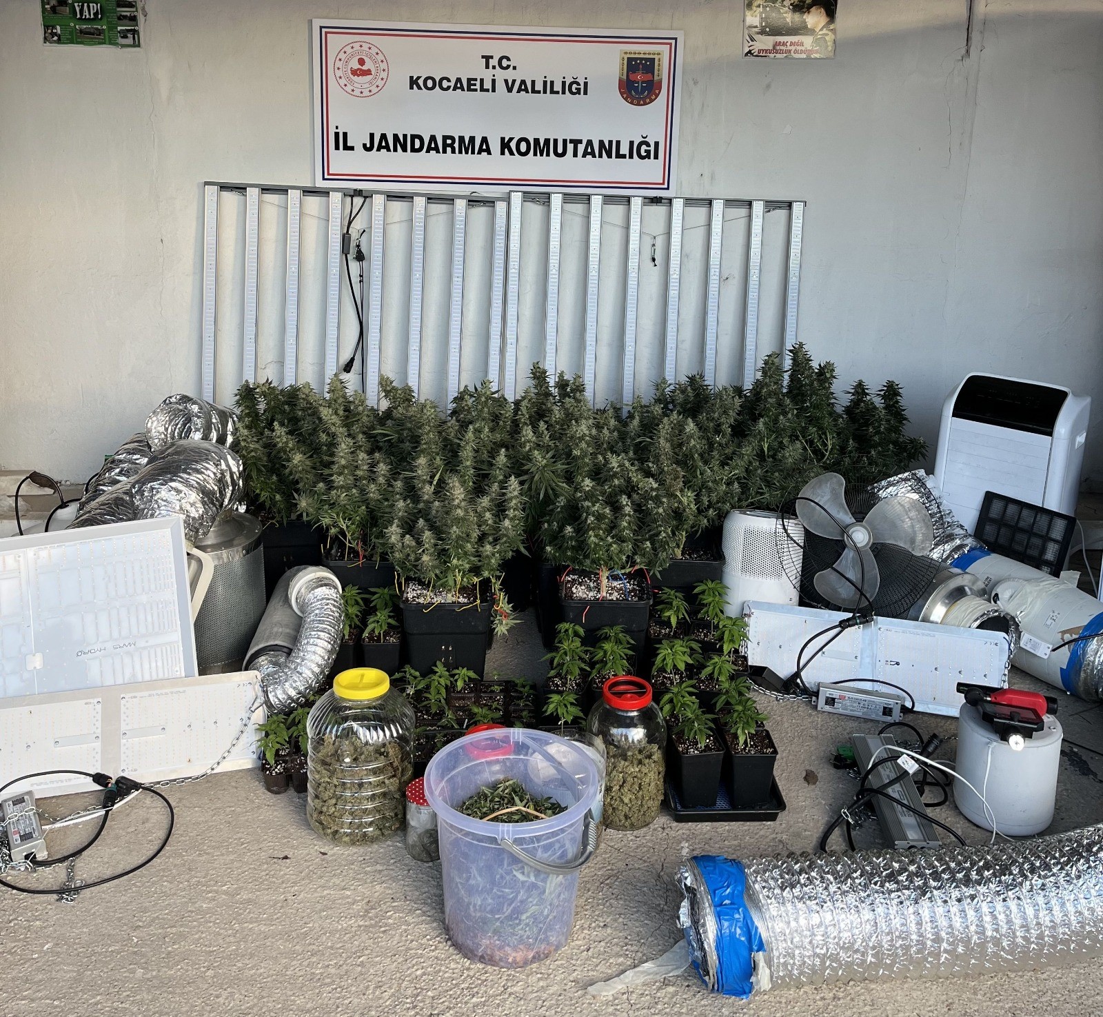 Kocaeli İl Jandarma Komutanlığı ekipleri, uyuşturucu ve uyarıcı madde imal ile ticaretinin önlenmesine yönelik çalışmalar kapsamında 9-15 Mart tarihleri arasında belirlenen 40 adrese eş zamanlı operasyon düzenledi. Narkotik dedektör köpeklerinin de katılımıyla adreslerde yapılan aramalarda, evlerin içine uyuşturucu yetiştirmek amacıyla kurulan özel iklimlendirme sistemleri tespit edildi. Aramalarda 4 kilo 886 gram skunk, 973 gram esrar, 271 kök kenevir, 1 kilo 309 gram kenevir tohumu, 84 gram bonzai, 75 gram metamfetamin, 40 sentetik ecza hap, 11 hassas terazi, 13 öğütücü, muhtelif iklimlendirme sistemleri ve 4 uyuşturucu kullanma aparatı ele geçirildi. Ayrıca adreslerde bulunan 2 ruhsatsız tabanca, 4 av tüfeği, 1 kurusıkı tabanca, 239 tabanca fişeği, 5 şarjör, 1 dedektör ile tarihi eser niteliğinde olduğu değerlendirilen 22 sikkeye el konuldu.