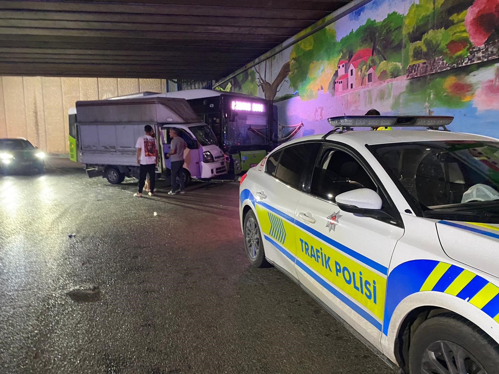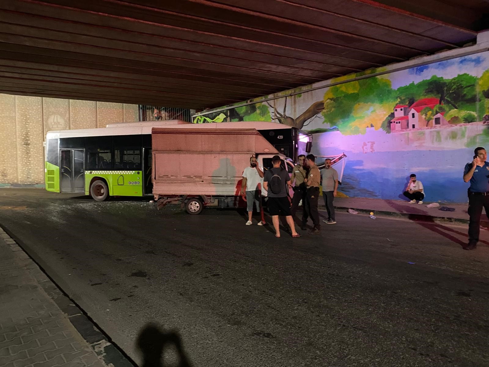 Halk otobüsü ile kamyonet çarpıştı: 2 yaralı