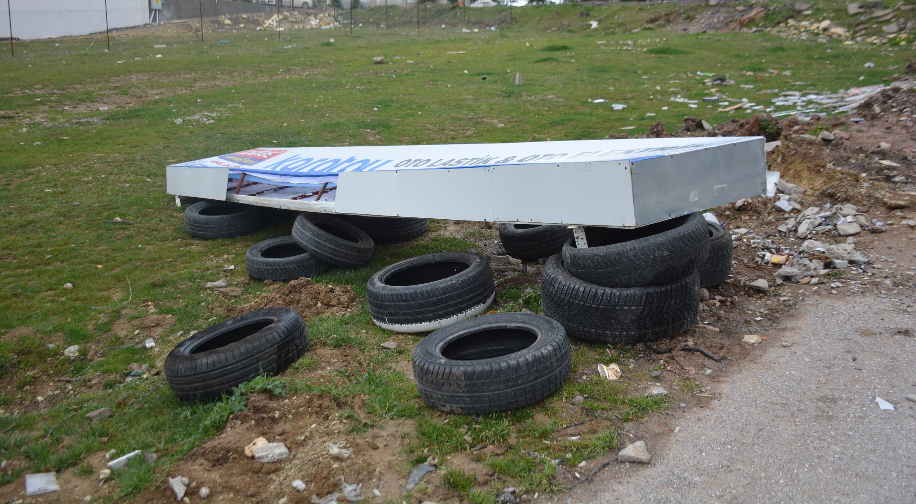 Lodosun devirdiği tabelalardan canını son anda kurtardı