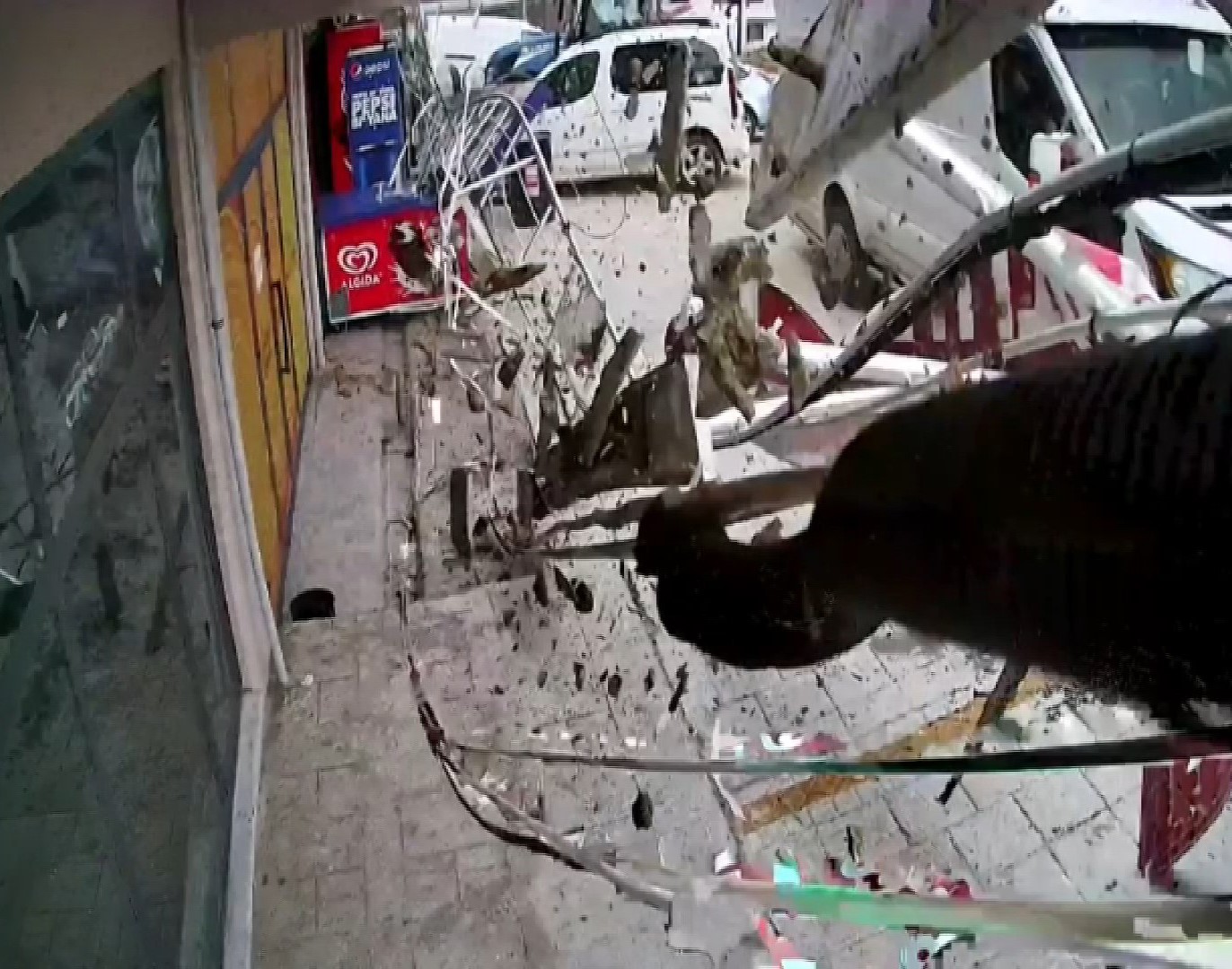 Kocaeli’de etkili olan lodos, yan yana bulunan iki işyerinin tabelalarını ve küpeştelerini devirdi. Markete girmekte olan bir vatandaş son anda geri adım atmasıyla kurtulurken o anlar saniye saniye güvenlik kamerasına yansıdı