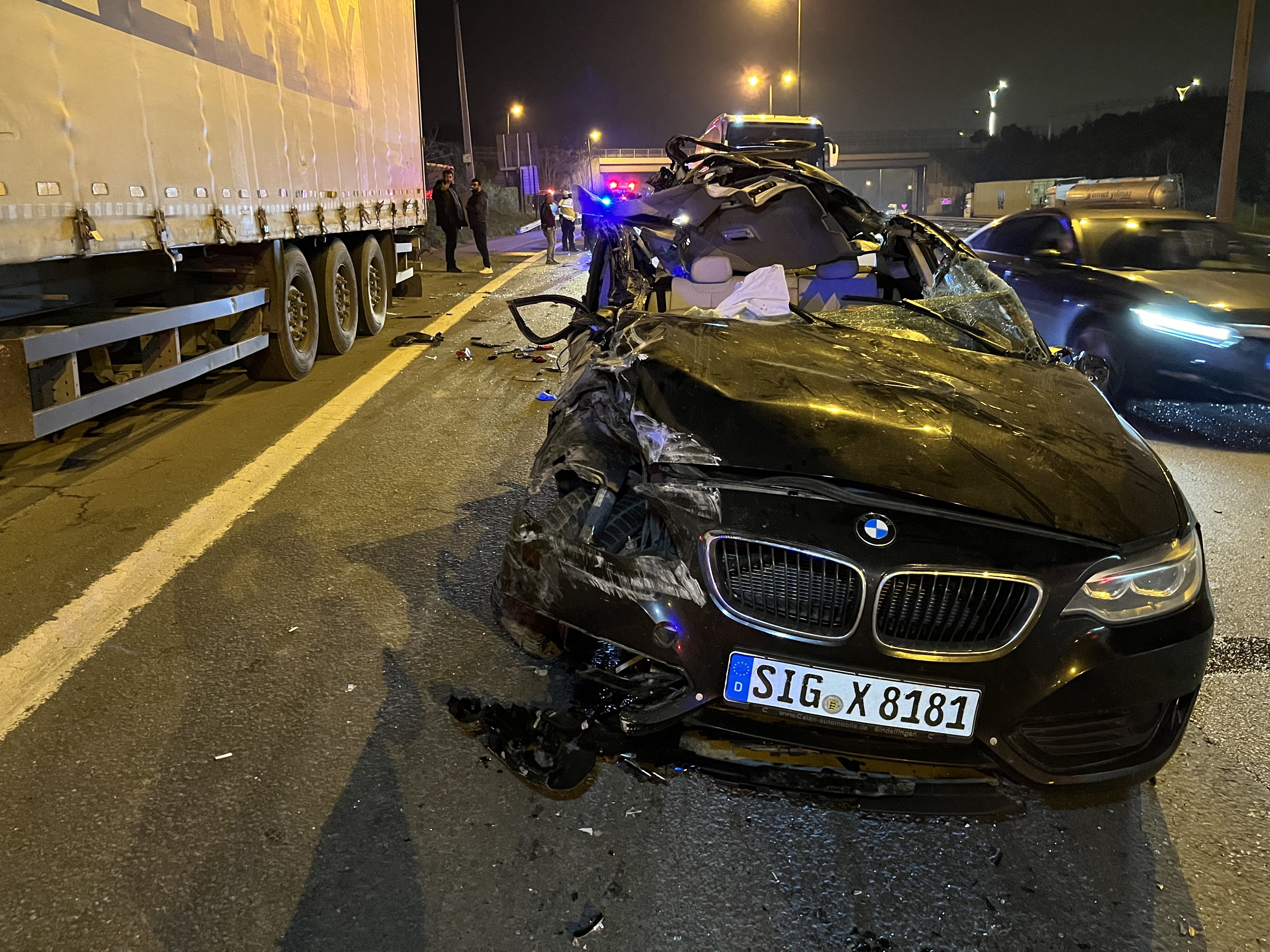 Kaza, TEM Otoyolu İzmit geçişi Gültepe Dinlenme Tesisleri mevkiinde meydana geldi. Edinilen bilgiye göre, İstanbul istikametine seyir halinde olan O.U. idaresindeki SIG X 8181 Almanya plakalı otomobil aynı yönde giden M.A. hakimiyetindeki 15 ACS 136 plakalı tırın dorsesine arkadan çarptı. Çarpmanın şiddetiyle araçlar 30 metre sürüklenirken, otomobilin tavanı koptu. Sürücü O.U., sağ koltuktaki Serkan Küçük ve arka koltuktaki S.Ç. isimli yolcular otomobilde sıkıştı. 112 Acil Çağrı Merkezine ihbarda bulunulmasıyla adrese itfaiye, sağlık ve polis ekipleri sevk edildi.