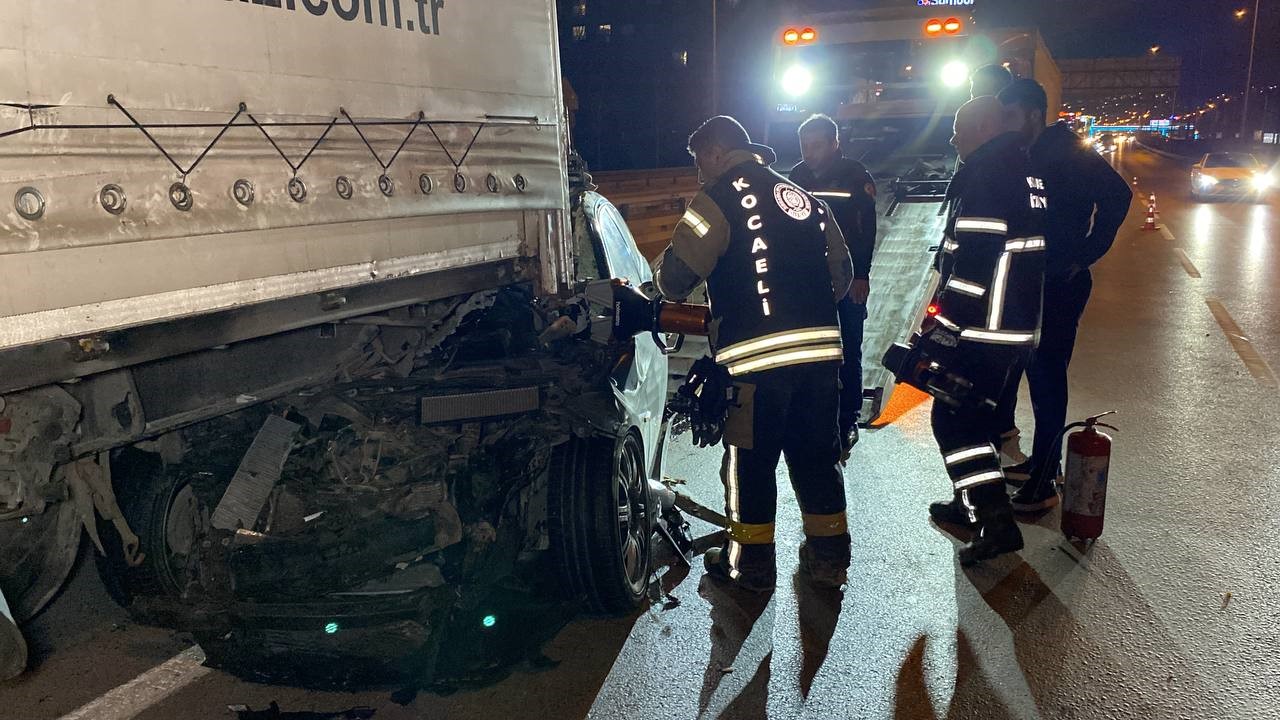 Kaza, 06.40 sıralarında Başiskele Ovacık Mahallesi D-100 karayolu geçişi Ankara istikametinde meydana geldi. T.A. (25) idaresindeki 41 ST 532 plakalı otomobil, iddiaya göre aşırı hız sebebiyle sürüsünün kontrolünden çıkarak yol kenarındaki bariyere çarptı. Savrulan otomobil aynı istikamette giden Ü.A. hakimiyetindeki 25 LT 445 plakalı tırın dorsesinin altına girdi. Çarpışmanın şiddetiyle tır ve otomobil 200 metre sürüklendi. Kazayı gören bir diğer tır sürücüsü, aracını durdurarak 112 Acil Çağrı Merkezine ihbarda bulundu. İhbar üzerine adrese itfaiye, sağlık ve polis ekipleri sevk edildi. İtfaiye ekiplerince T.A. sıkıştığı otomobilden çıkartıldı. Sağlık ekiplerince ilk müdahalesi yapılan T.A., özel bir hastaneye sevk edildi. T.A.’nın sağlık durumunun ciddiyetini koruduğu öğrenildi. Öte yandan, kişisel bakım ürünleri yüklü tırın Kocaeli’den Mersin'e gittiği bildirildi. Polis, kazayla ilgili inceleme başlattı.
