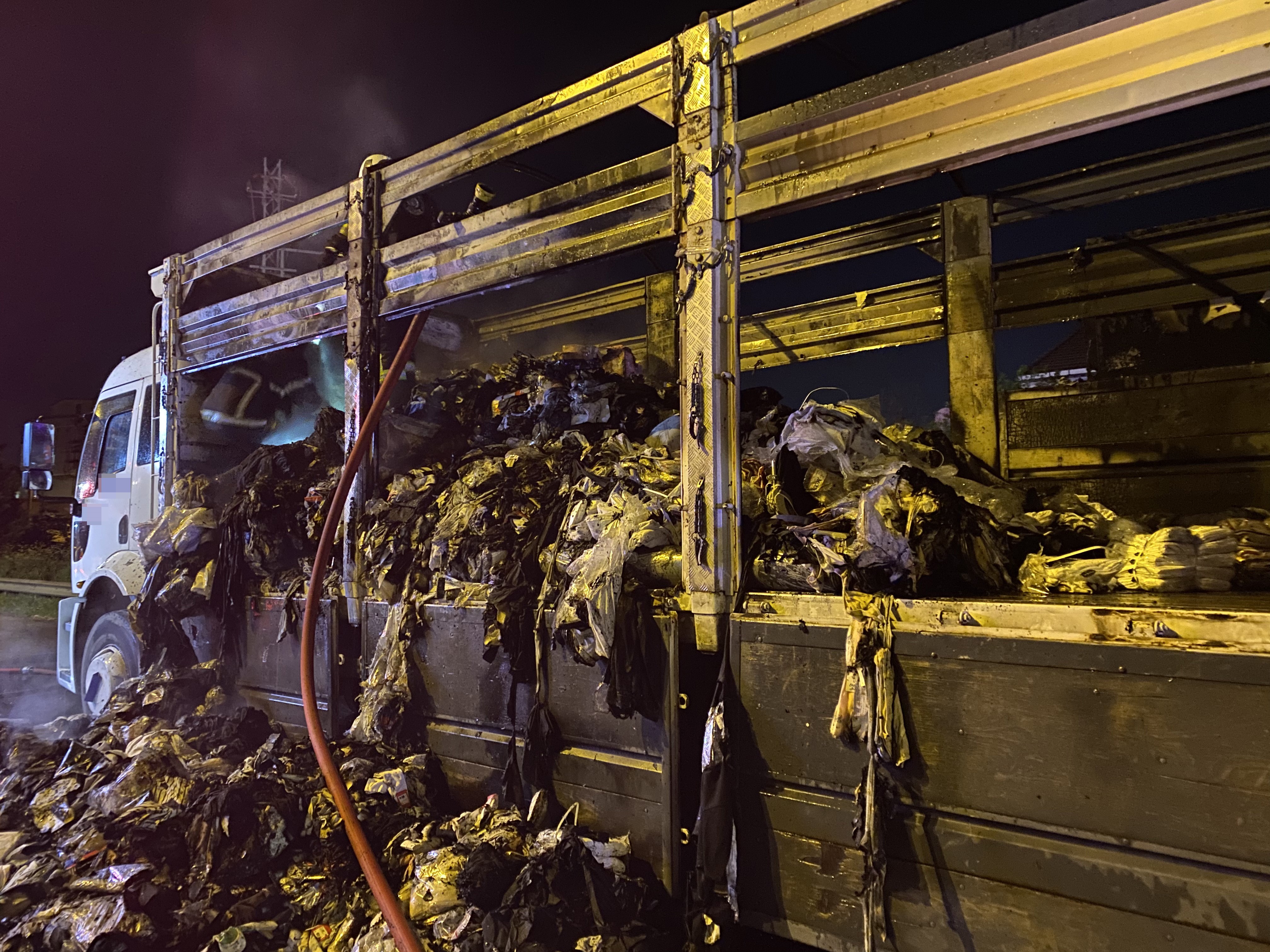 İtfaiye ekipleri, yoğun trafik nedeniyle bölgeye ters istikametten kontrollü şekilde ulaşarak alevlere müdahale etti. Ekiplerin çalışmaları sonucunda yangın kontrol altına alınarak söndürüldü. Yangın sonrası kamyonun dorsesinde bulunan tekstil ürünlerinin tamamı yanarak kül oldu. İtfaiye ekipleri, yeniden alevlenme riskine karşı uzun süre soğutma çalışması gerçekleştirdi. Yanan malzemeler dorseden boşaltılırken, Karayolları ekipleri de yolda temizlik çalışması yaparak trafik güvenliğini sağladı.