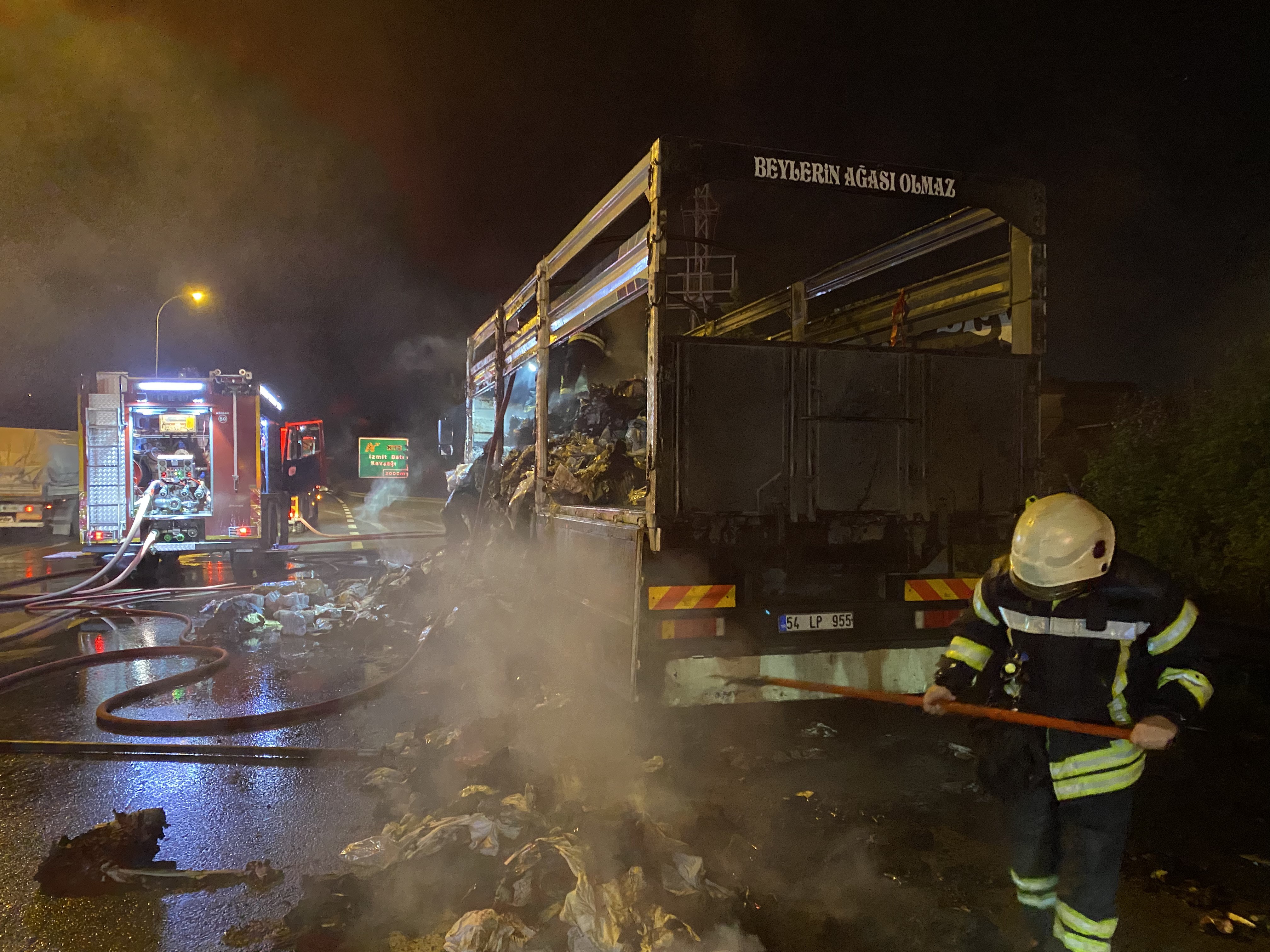 Olay, TEM Otoyolu Derince Yenikent mevkiinde meydana geldi. İstanbul’dan Kocaeli istikametine tekstil ürünü taşıyan kamyonun sürücüsü, seyir halindeyken aracın arka kısmından dumanlar yükseldiğini fark etti. Durumu kontrol etmek isteyen sürücü, aracı yol kenarında bir köprü altındaki müsait alana çekti. Kısa sürede büyüyen alevler kamyonun dorsesindeki tüm yükü sardı. Sürücünün ihbarı üzerine olay yerine itfaiye, sağlık ve otoyol jandarma ekipleri sevk edildi.