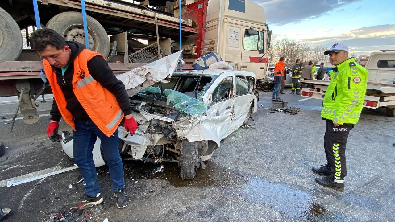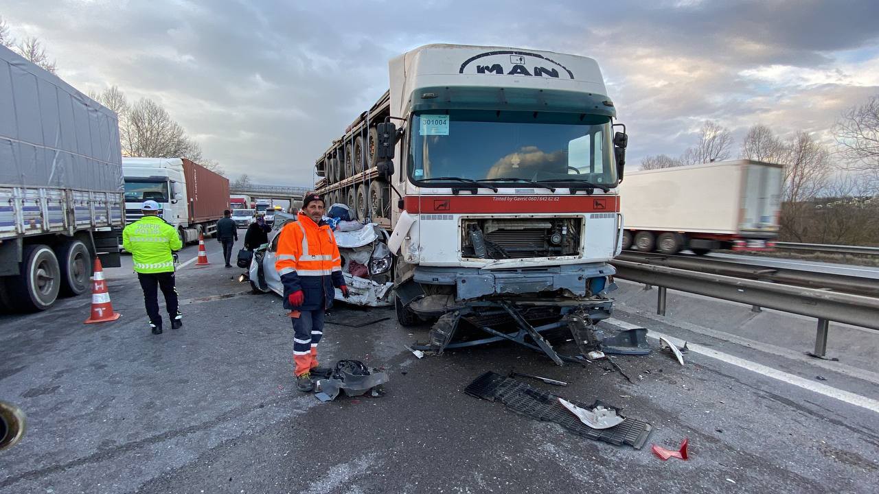 TEM Otoyolu Kocaeli geçişinde 3’ü tır toplam 9 aracın karıştığı zincirleme trafik kazasında ortalık savaş alanına döndü