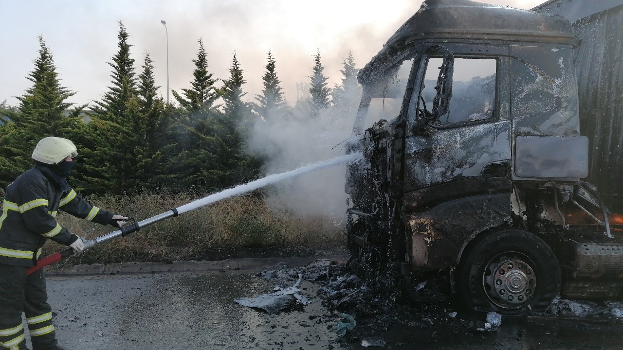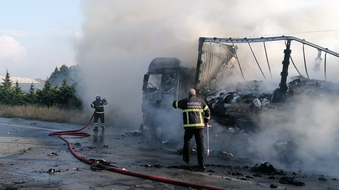 TEM Otoyolu Kocaeli geçişinde seyir halindeki tırda yangın çıktı. İtfaiye ekiplerince söndürülen yangında tır kullanılamaz hale geldi