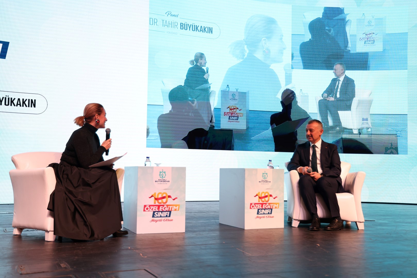Düvenci’nin sorularını cevaplayan Başkan Büyükakın, “3 günlükken oğlum hastalandı. O olmasaydı ben bu işi bu kadar anlayamazdım. O olmasaydı bu projeler yine yapılacaktı. Ama ben bu işe bu kadar hakim olamayacaktım. Eskiden sakat denilirdi. Daha sonra engelli denmeye başladı. Şimdi ‘özel densin’ deniliyor. Mesele sadece kelime değil. Farkındalık lazım. Milli Eğitim Müdürlüğü’müz ile birlikte yaptığımız bir proje. 100 sınıf yaptık. Bunu 256’ya çıkaracağız. Sınıflarımızın önce fiziksel şartları hazırlandı. Her gereksinim grubuna göre özel sınıflar hazırladık. Daha sonra materyaller hazırlandı. Sivil Toplum Kuruluşlarına önemli görevler düşüyor. Bu öğrencilerimize yetecek öğretmenimiz yok. Bunu STK’lar ile kapatabiliriz. Ayrıca Kocaeli Büyükşehir Belediyesi olarak 2 engelsiz yaşam merkezi inşa ediyoruz. Birisi Gebze’de, diğeri İzmit’te. Her şeyi düşünüldü ve özel olarak tasarlandı. Ayrıca özel gereksinimli bireyler için ‘Ben de Varım’ projesini başlattık. Sanatta ben de varım diye başladı, sporla devam etti. Yazar ve sporcularla özel gereksinimli bireyleri bir araya getirdik. Becerilerine göre çocuklarımız spora ve sanata yönlendiriliyor” açıklamasında bulundu. Panelin sonunda Gölcük Cahit Külebi Ortaokulu ve İzmit Mimar Sinan Ortaokulu özel eğitim sınıflarından canlı bağlantılar yapıldı.