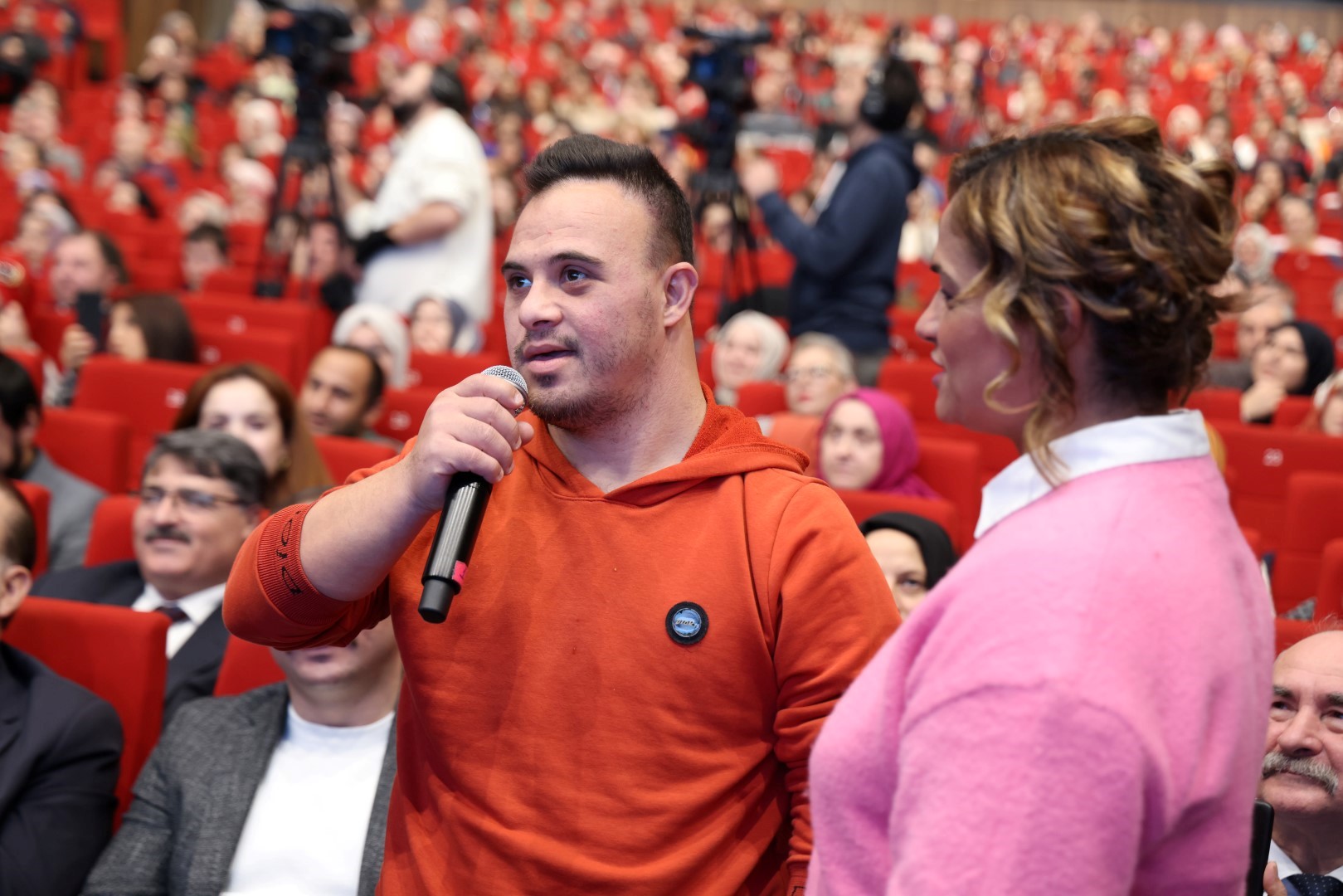 Programın sonunda Down Cafe’de çalışan ve bir zincir otelden iş teklifi aldığını söyleyen Emre salonda yüzleri güldürdü. İş için heyecanlı olduğunu belirten özel gereksinimli Emre Özkaraaslan evlenmek istediğini Başkan Büyükakın’a iletti. Başkan Büyükakın, Emre’ye nikahını kıyma ve TOGG aracını gelin aracı yapma sözü verdi.