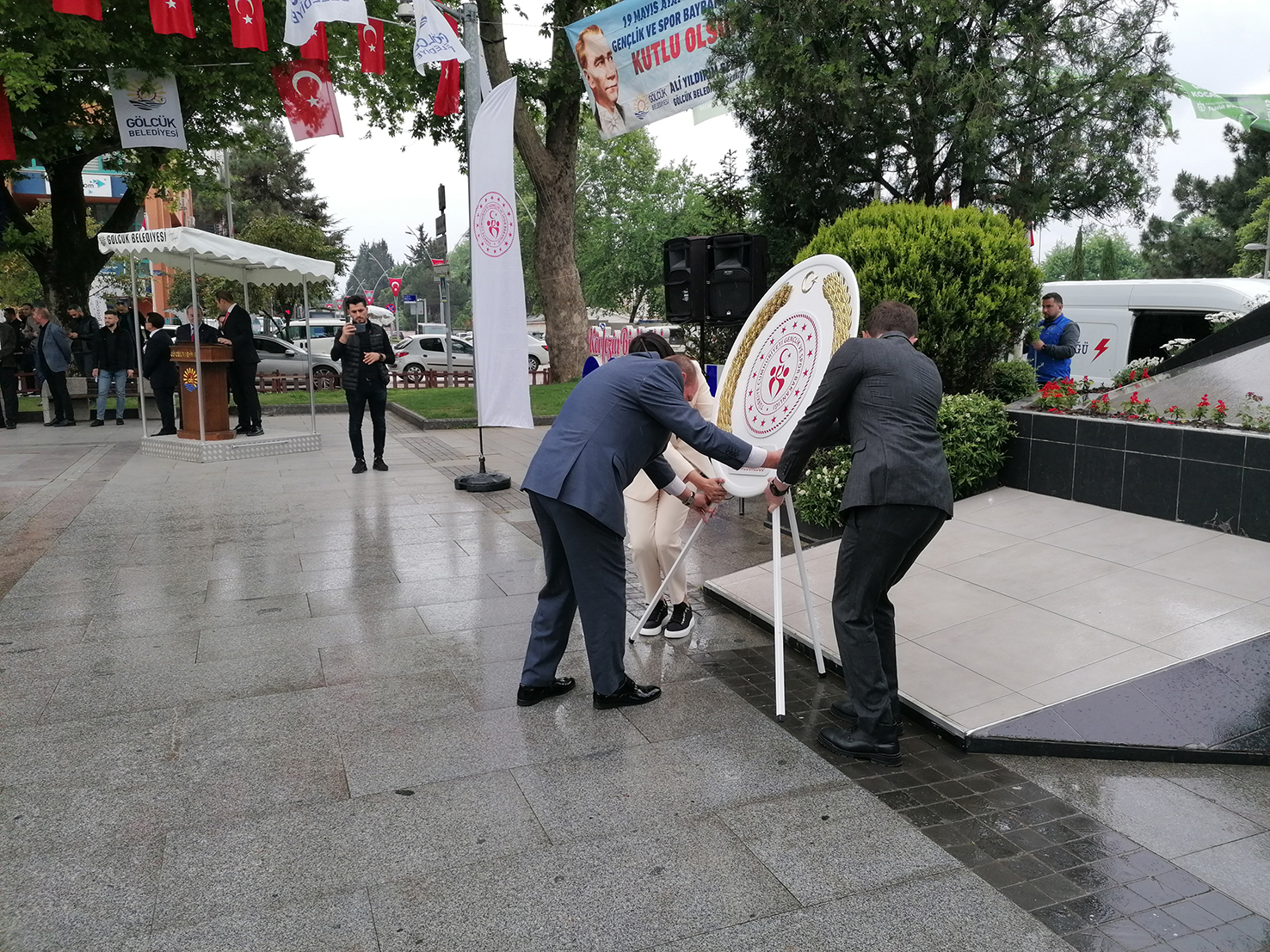 19 Mayıs Atatürk’ü Anma, Gençlik ve Spor Bayramı, bugün ilçemizde düzenlenen çeşitli programlarla kutlandı. Anıtpark’ta düzenlenen çelenk sunma töreni ile başlayan program, Çakabey Anadolu Lisesi’nin 17 Ağustos Kapalı Spor Salonu’nda gerçekleştirdiği etkinliklerle devam etti. Programlara Kocaeli Vali Yardımcısı ve Gölcük Kaymakam Vekili Ali Ada, Gölcük Belediye Başkanı Ali Yıldırım Sezer, Gölcük Cumhuriyet Başsavcısı Tayfun Akbaş, Gençlik ve Spor İlçe Müdürü Hasan Ceyhan, Gölcük İlçe Milli Eğitim Müdürü Caferi Tayyar Mert, kaymakamlık daire müdürleri, siyasi partilerin ilçe başkan ve yöneticileri, ilçemizdeki dernek ve sivil toplum kuruluşlarının başkan ve yöneticileri, okul müdürleri, öğretmenler, gaziler, öğrenciler ve vatandaşlar katılım gösterdi.