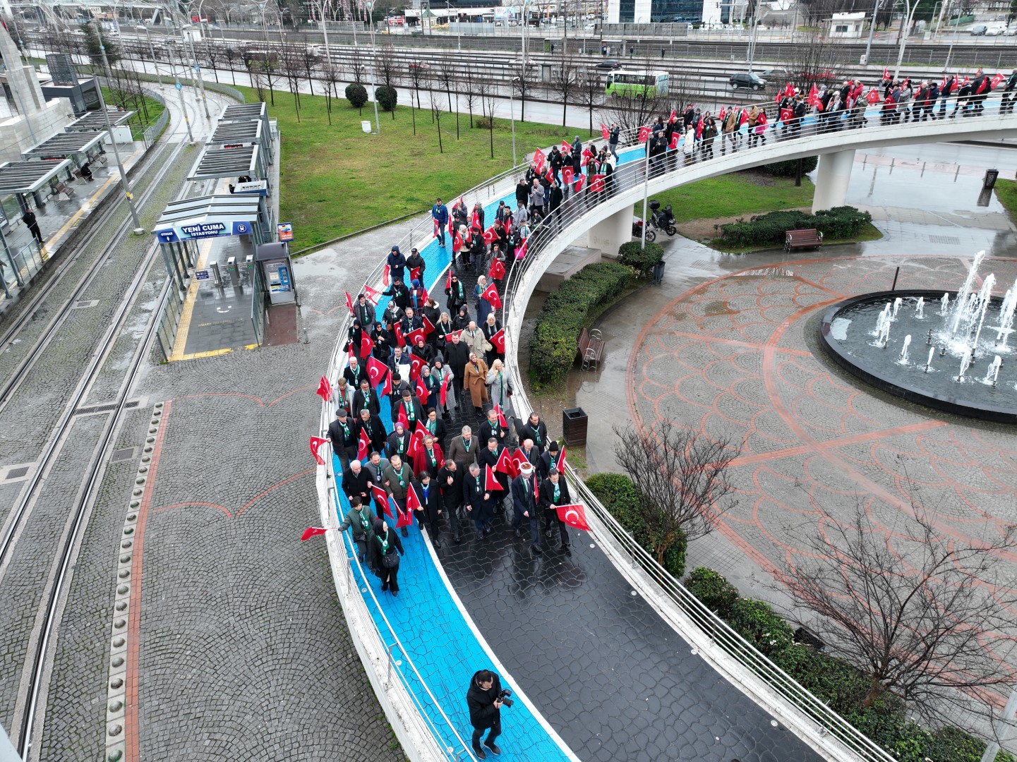 Başkan Büyükakın, “Bizim bu topraklar üzerindeki varlığımıza hiçbir zaman tahammül etmediler. Bundan sonra da edecek değiller. Onların ajandalarında, bizi bu topraklarda fazla görmek, buraya ait görmemek, burada bizi işgalci görmek damgası var. Siz istediğiniz kadar onlar gibi olduğunuzu ifade edin, onlara benzemeye çalışın, her ne yaparsanız yapın asla sizlerden razı olmayacaklar. Asla sizlere dair kanaatlerini değiştirmeyecekler. Ajandalarını her zaman takip edecekler. Bir gün bizlere ait olan bu topraklardan bu necip milleti atacağız diyecekler. İşte Sadık Ahmet’in dediği gibi ‘Türk olduğum için beni şu an hapse götürüyorlar’. Biz de diyoruz ki asla başaramayacaksınız” ifadelerini kullandı.