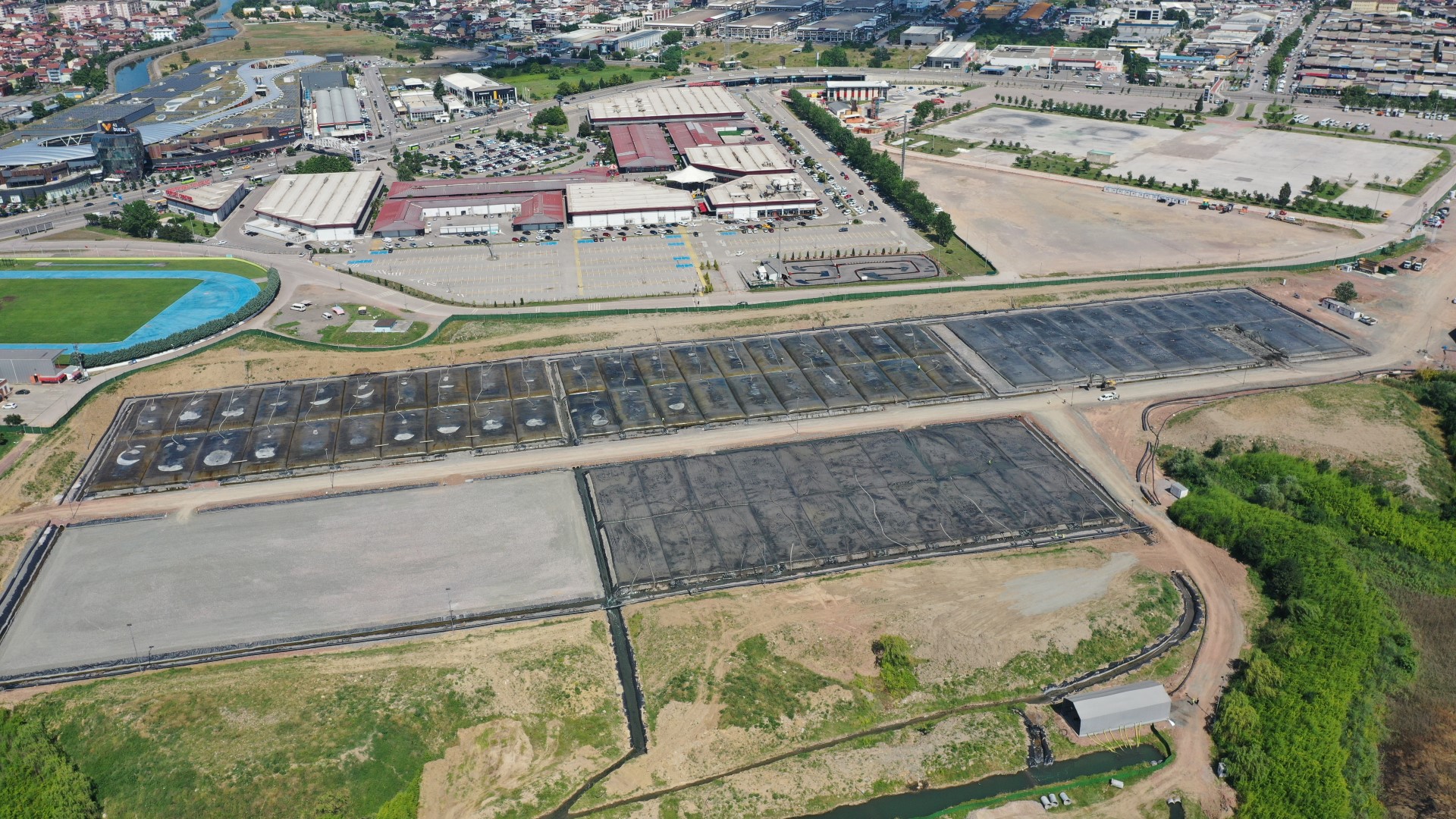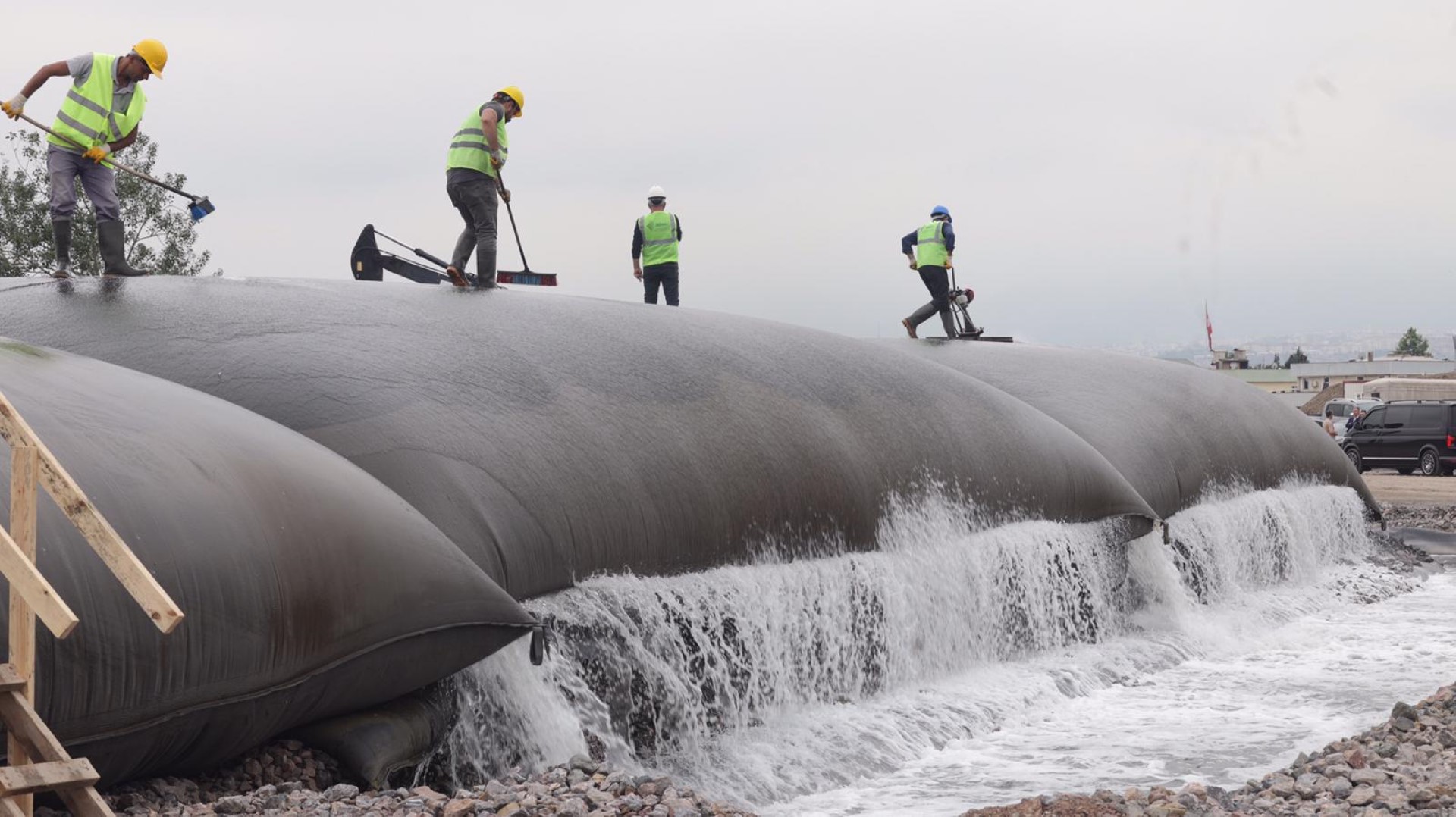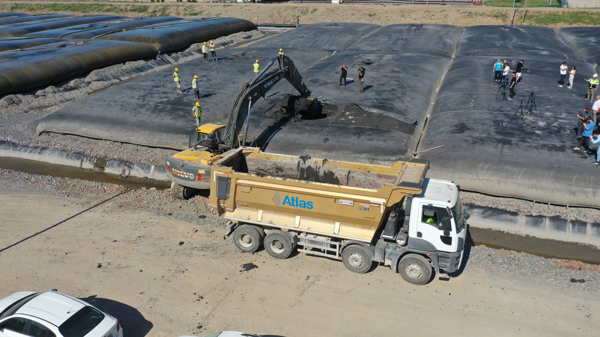 158 dönüm üzerinde kurulan şantiye alanında polimer hazırlama tesisiyle her biri 1.000 m3 hacimli toplam 120 geotekstil tüplerin serilebildiği 6 ada bulunuyor. Şantiye alanına kadar gelen dip çamuru boru hattına polimer enjekte ediliyor. Boru hattında topaklanmaya başlayan çamur, geotekstil tüplerde devam ederek, tüpün içinde suyunu bırakıyor ve tüpün içinde süzülme meydana geliyor. Tüplerde biriken dip çamuru susuzlaşarak en az yüzde 60 kuruluğa gelene kadar bekletiliyor. Daha sonra kesilen tüplerdeki çamur kamyonlara yüklenerek, depolama sahasına taşınıyor.