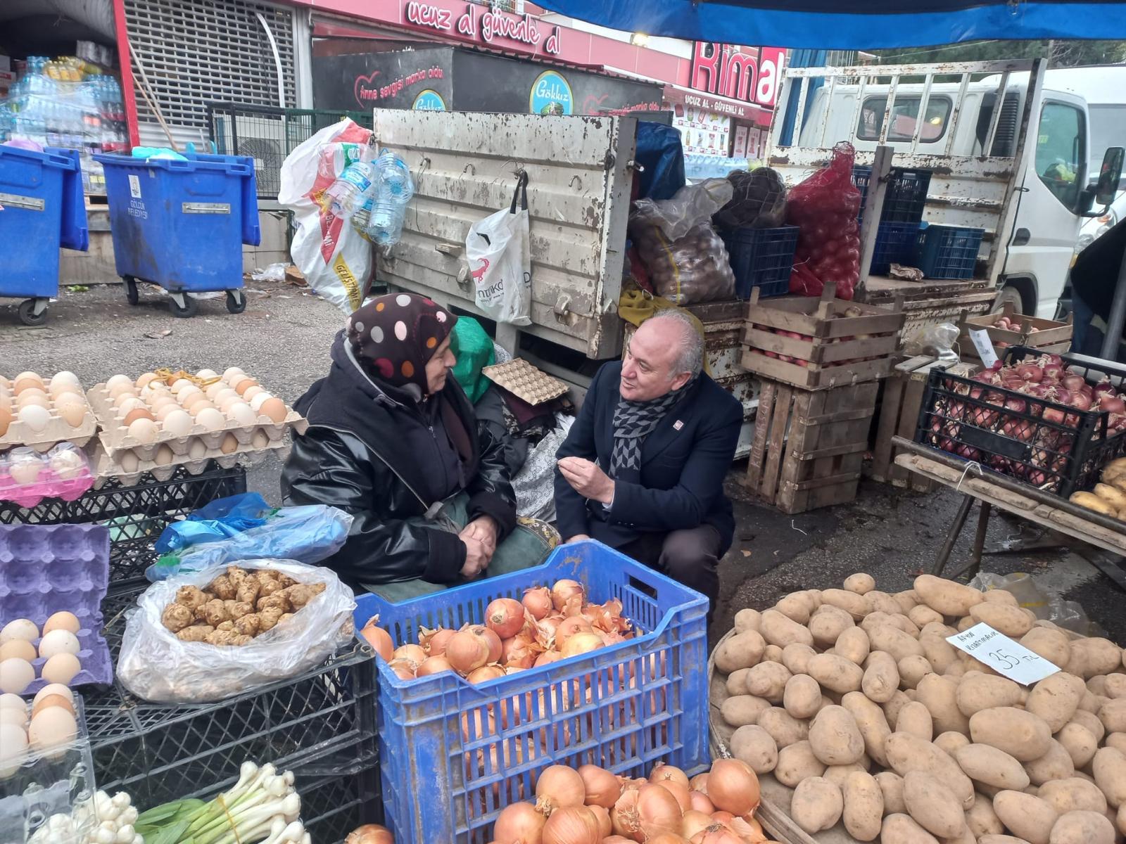 CHP Gölcük İlçe Örgütü, CHP Kocaeli İl Başkanı Erdem Arcan ile birlikte Gölcük’te sahaya indi. Başkan Arcan’ın ilk durağı Değirmendere Salı Pazarı oldu