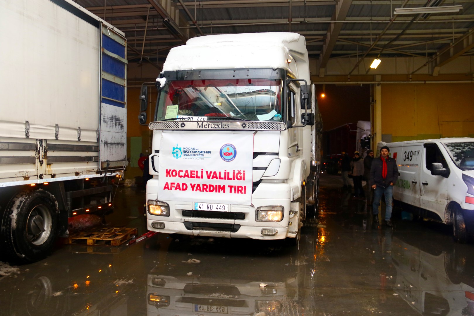 Kocaeli Valiliği, Kocaeli Büyükşehir Belediyesi ve AFAD koordinasyonunda deprem bölgesi için toplanan yardım malzemeleri tırlarla afet bölgesine gönderiliyor. Kocaeli Valiliği, Kocaeli Büyükşehir Belediyesi ve AFAD koordinasyonunda, ayni yardım kampanyası yoğun bir şekilde devam ediyor. Vatandaşların, STK’ların ve diğer kuruluşlar tarafından deprem bölgesine gönderilmesi için bağışlanan yardımlar, eski Carrefour binasında tırlara yüklenerek afet bölgesine gönderiliyor. Ayni Yardım Merkezi’nde vatandaşların getirdikleri yardımlardan oluşan toplamda 60 adet tır deprem bölgesine yola çıktı.