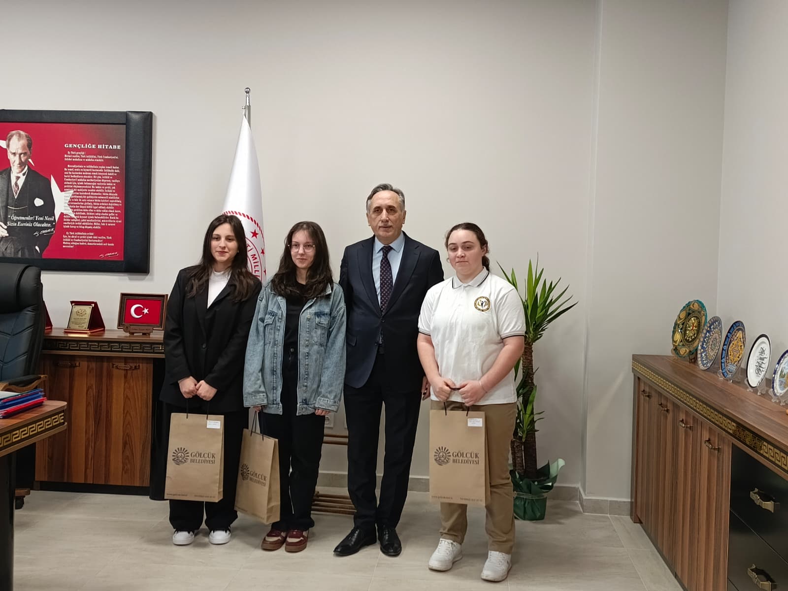 Gölcük İlçe Milli Eğitim Müdürlüğü’nde düzenlenen ödül töreninde dereceye giren öğrencilerin okul müdürleri de hazır bulundu. Törende Gölcük Belediyesi tarafından hazırlanan hediyeler öğrencilere verildi. Öncelikle ortaokullar arasında düzenlenen resim yarışmasında dereceye giren Cahit Külebi Ortaokulu öğrencisi Mina Akdeniz, Şehit Kamuran Ablak Ortaokulu öğrencisi Derya Furuncu ve Kavaklı Şehit Onbaşı Adem Başoğlu Ortaokulu öğrencisi Zümra Akın’a ödülleri verildi.