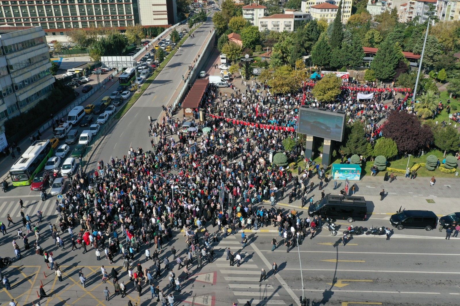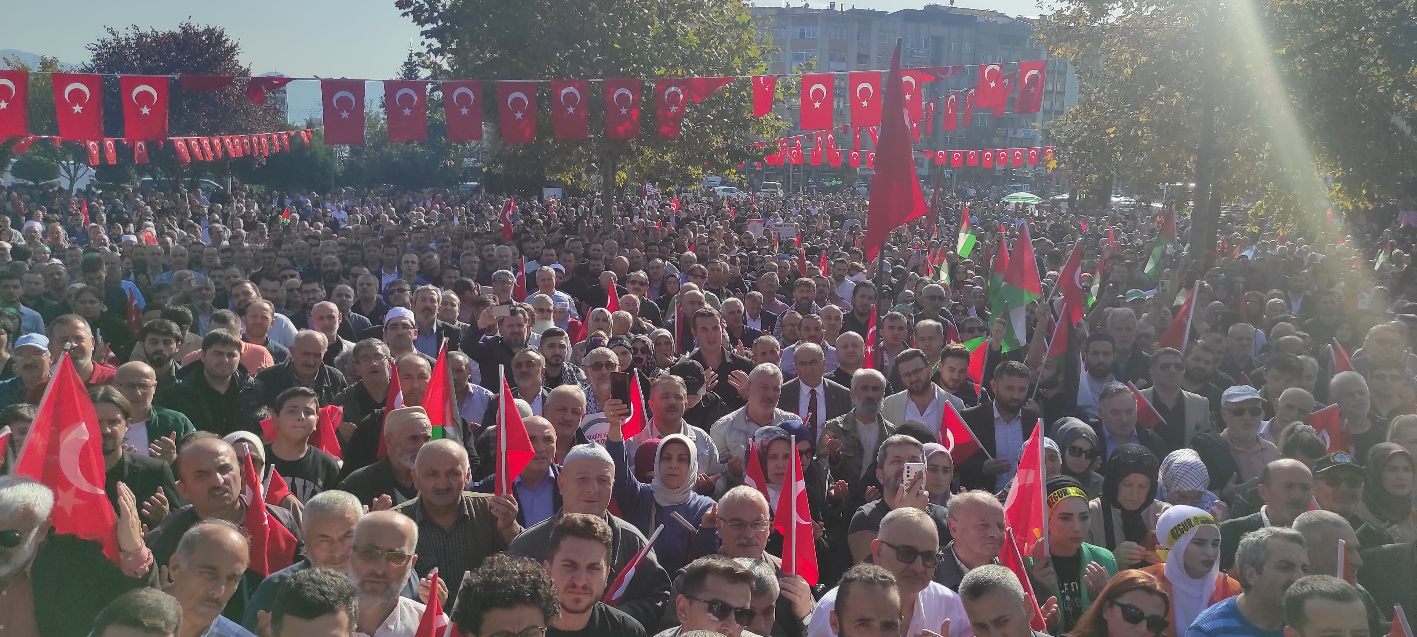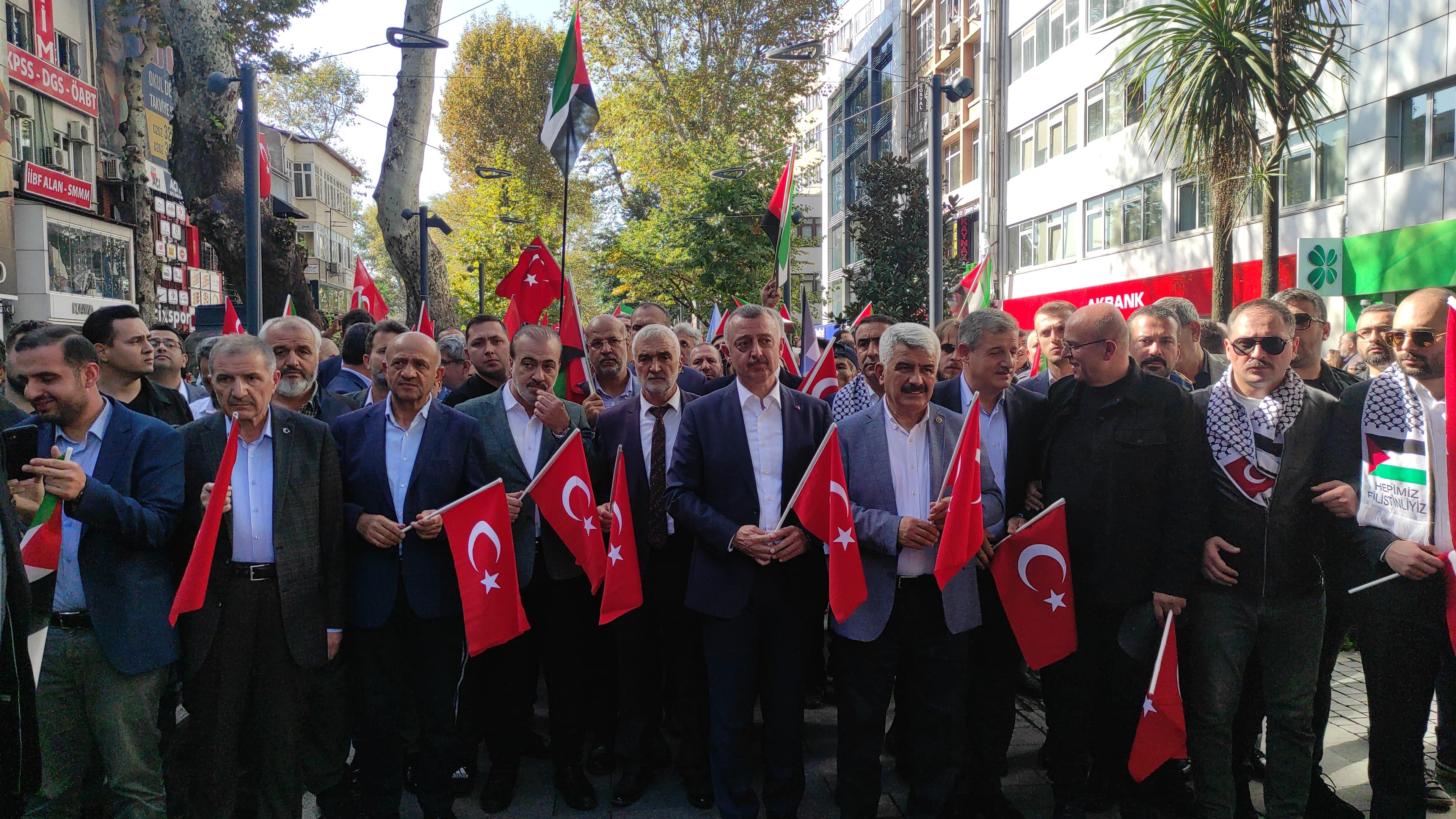 Kocaeli'de binlerce kişi Filistin'e destek vermek, İsrail'i protesto etmek için yürüdü. İzmit Yürüyüş Yolu'nda buluşan yaklaşık 5 bin kişi, "kahrolsun İsrail" sloganları attı. 250 sivil toplum kuruluşunun öncülüğünde düzenlenen yürüyüşe, Kocaeli Büyükşehir Belediye Başkanı Tahir Büyükakın, milletvekilleri, ilçe belediye başkanları ve siyasi parti temsilcileri de katıldı. Ellerindeki Türkiye ve Filistin bayraklarıyla yürüyen kalabalık, İsrail'i protesto etti. Programda hayatını kaybeden Filistinli vatandaşlar için de dua edildi.
