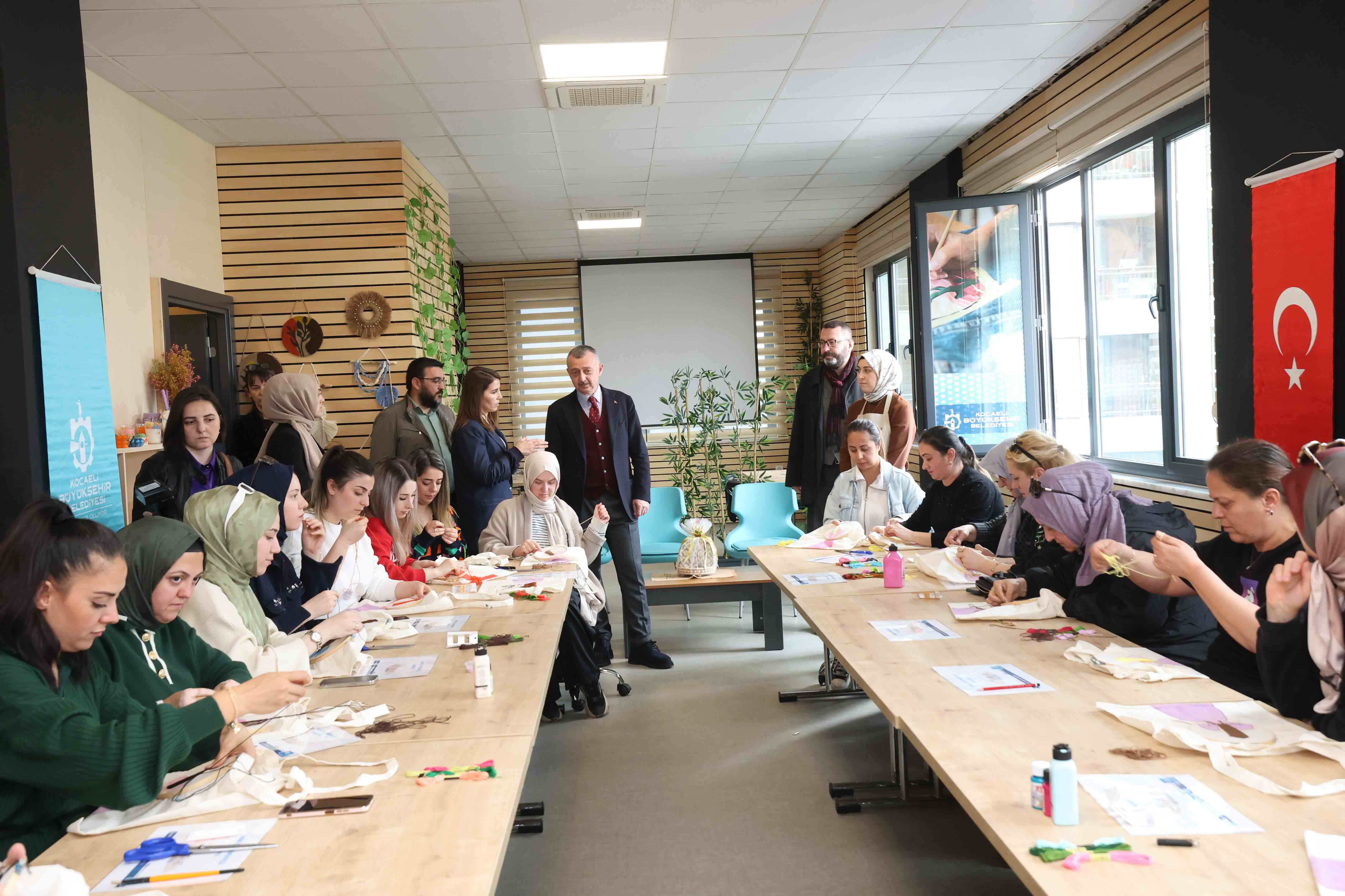 18’incisi açılan Anne Şehir Merkezi’nin tanıtım programına katılan Başkan Büyükakın, 8 Mart Dünya Kadınlar Gününde söz verdiği gibi Anne Şehir Merkezilerinin sayısının arttırılacağını söyledi. Başkan Büyükakın çocukların sevgi seliyle karşılaştı. Daha sonra merkezi gezdi ve çocuk oyun alanlarındaki etkinliklere katıldı. Anneler için düzenlenen marifetli eller atölyesinde çalışma yapan kadınların çalışmalarını da ziyaret etti. Çocuklar eğitim atölyelerinde eğlenirken, anneler de marifetli eller atölyesinde etamin işleme ve bez çanta çalışmalarına katıldı. Başkan Büyükakın’a atölyelerde el emeği işlemelerden oluşan bir hediye taktim edildi.