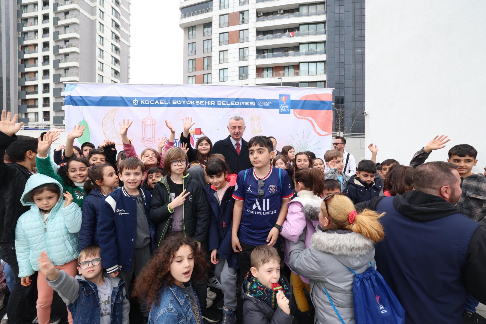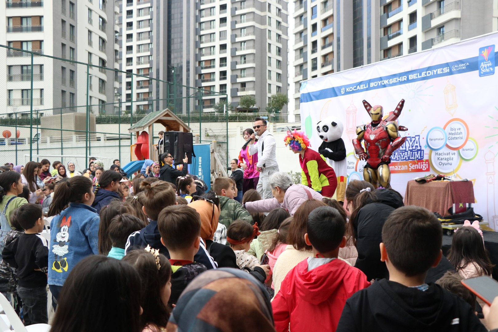 Kocaeli Büyükşehir Belediye Başkanı Tahir Büyükakın, Akasya Anne Şehir Merkezi’nin tanıtımı sırasında Ramazan şenliğinde eğlenen çocuklar ve aileleriyle bir araya geldi