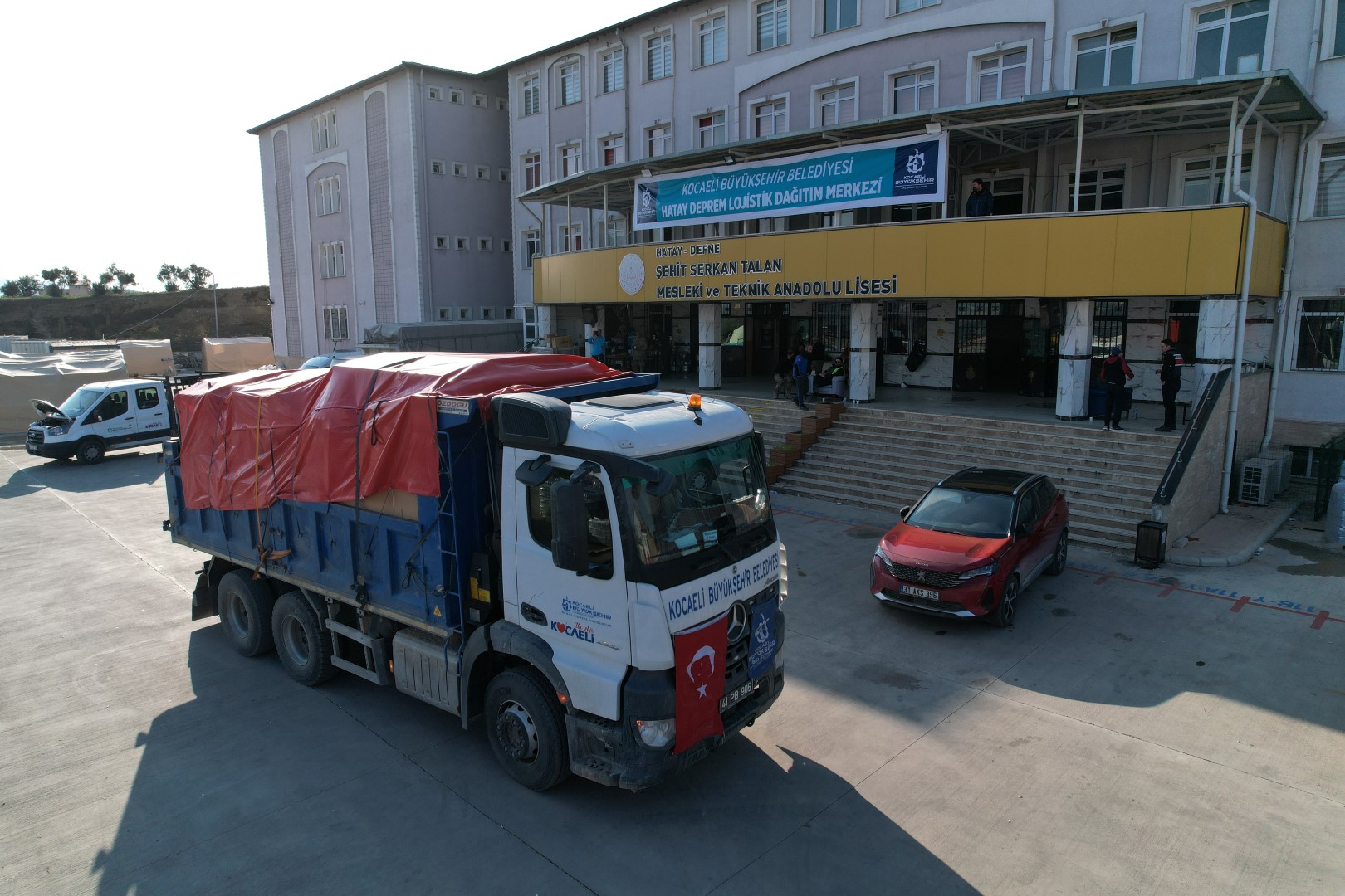 Depremin ardından Kocaeli Büyükşehir Belediye Başkanı Doç. Dr. Tahir Büyükakın, Hatay’ın Defne ilçesinde görevlendirilmiş ve ilçeye adım atar atmaz yardımların sağlıklı bir şekilde dağıtılabilmesi için lojistik merkezi oluşturmuştu. İzmit’teki eski Carrefour binasını da ayni yardım merkezine dönüştüren Büyükşehir, buradan hareket edip Defne’ye gelen yardımların dağıtımını da ilçedeki lojistik merkezinden yapıyor. Büyükşehir’in Defne’deki lojistik merkezine Kocaeli’den ve AFAD’ın yönlendirmesiyle Türkiye’nin diğer yerlerinden yüzlerce tır geliyor.