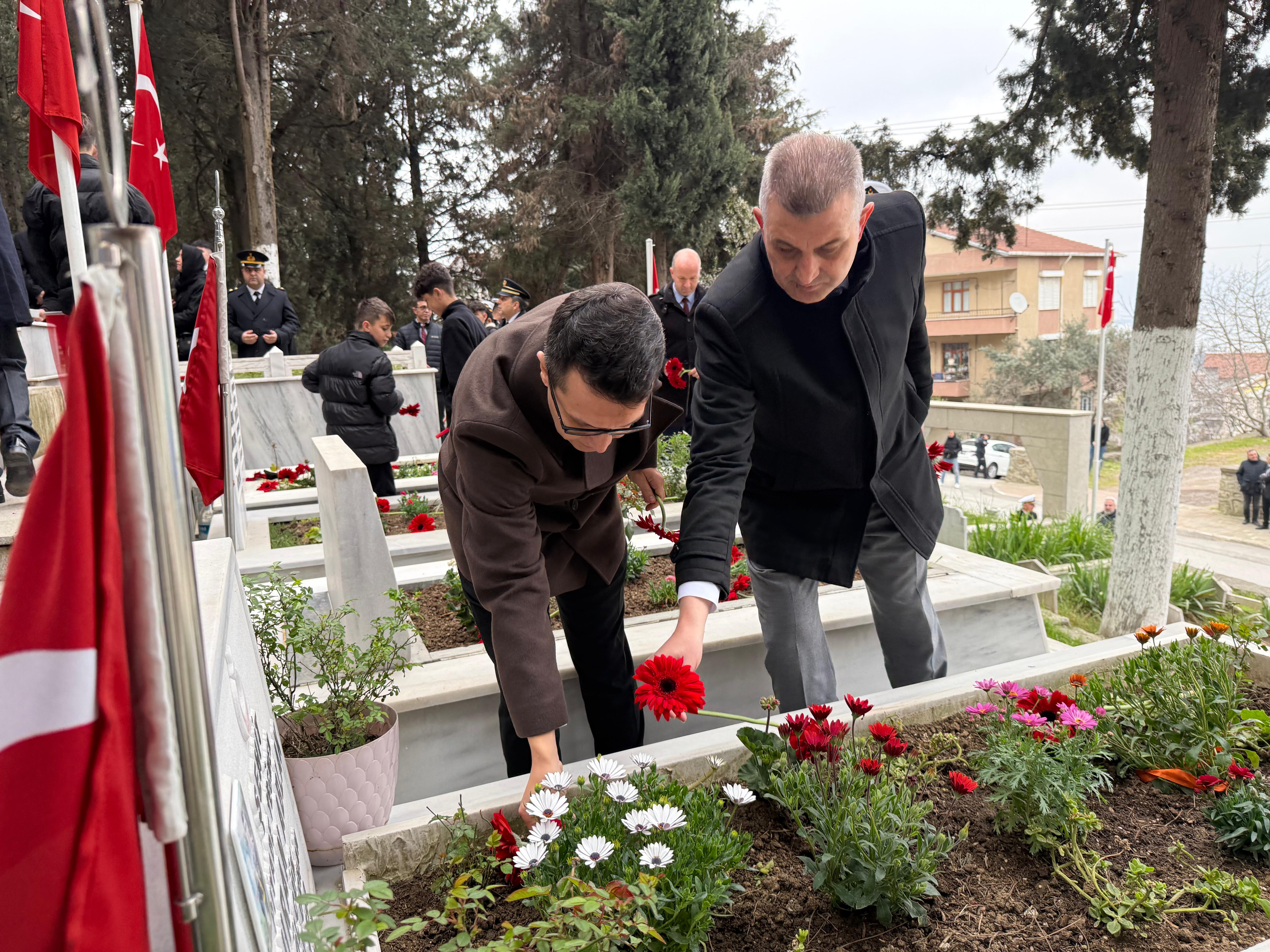 Akabinde Değirmendere Atatürk Ortaokulu’na geçildi. Burada Anıtpark’taki protokolün yanı sıra okul müdürleri, öğretmenler, öğrenciler ve vatandaşlar hazır bulundu. Programda ilk olarak bir dakikalık saygı duruşunda bulunuldu, ardından İstiklal Marşı’mız okundu. Sonrasında Değirmendere Atatürk Ortaokulu Sosyal Bilgiler Öğretmenlerinden Murat Koçaklı, günün anlam ve önemini belirten konuşmayı gerçekleştirdi. Koçaklı konuşmasında “Bugün, Türk savaş tarihine altın harflerle yazılan Çanakkale Zaferi’nin 111. yıl dönümünü kutlamanın ve mukaddes vatanımız için canlarını çekinmeden feda eden aziz şehitlerimizin Şehitler Günü’nü idrak etmenin büyük onurunu yaşamaktayız. Türk milletinin elde ettiği bu zafer, sadece kazanılmış bir savaş olarak görülmemeli, etkileri ve sonuçları itibariyle neler götürüp getirdiğine iyi bakılmalıdır. Bilinmelidir ki! Bu zafer kolay elde edilmemiş, Türk milletinin Anadolu’daki varlığının devamı bu savaşın kazanılması ile mümkün olmuştur. Çanakkale Savaşları, maneviyatın maddiyatı yendiği yer olma özelliği ile dünya tarihi üzerinde de büyük etkilere neden olmuş, asırlarca sömürülen ülkelerin bağımsızlık fikrinin kuvvetlenmesine yardımcı olmuştur. Çanakkale Zaferi, Türk milletinin kaderini olumlu yönde değiştirmekle kalmamış, dünya milletlerinin düşünce yapısının değişmesine de büyük etki etmiştir” dedi.