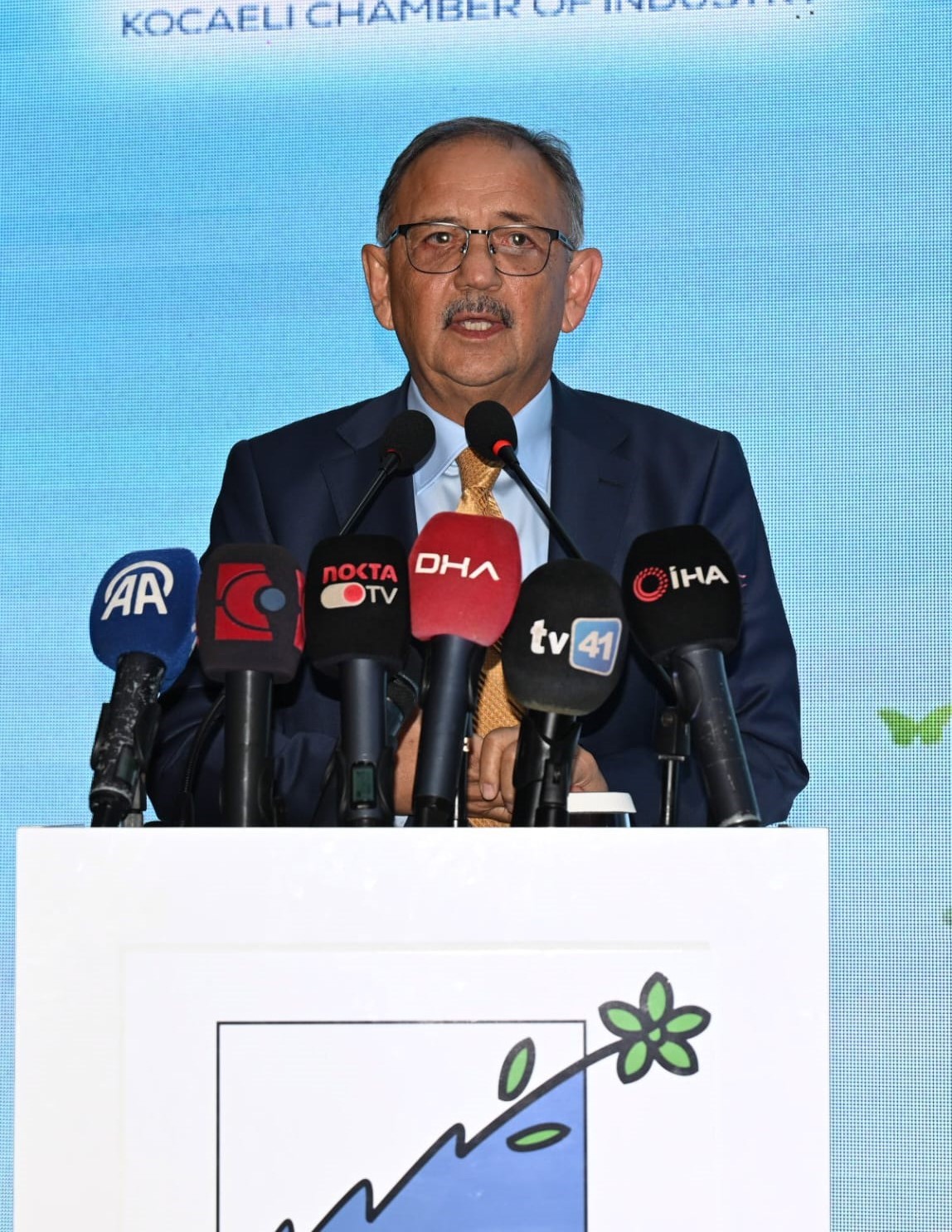 Çevre konusuna değinen Bakan Özhaseki, “Amacımız ülkemizin doğasını koruyarak kalkınmayı sağlayabilmek. İkisini aynı anda yapabilmeyi hedefliyoruz. Bir taraftan iklim değişikliğinin getirmiş olduğu birçok sorunla da karşı karşıyayız. En son veriler; dünyanın ısısının 1.45 derece arttığı, içinde bulunduğumuz Akdeniz Havzası'nın ise daha fazla oranda arttığı, eğer bu 2 derece çıkarsa önce gıda krizinin kopacağı, 3 derece yükselirse bu ısı, dünyada birçok yerde iklim krizinden dolayı çölleşmenin başlayacağı ve milyonlarca insanın göç tehdidiyle karşı karşıya kalacağı şeklinde. Büyük tehlikeyle karşı karşıyayız. Bunun sebebi de sanayi devrimiyle birlikte üretimin korkunç şekilde artması, onun tüketimi tetiklemesi ve neticesinde dışarıya atmış olduğumuz atıklar. Üretirken ortaya salmış olduğumuz karbon salınımı. Çevredeki bu tahribattan dolayı da geçtiğimiz yıl Türkiye'de bin civarında büyük felaketle karşı karşıya kaldık. Yangınlar, seller, heyelanlar, müsilajlar arka arkaya geliyor" ifadelerini kullandı.