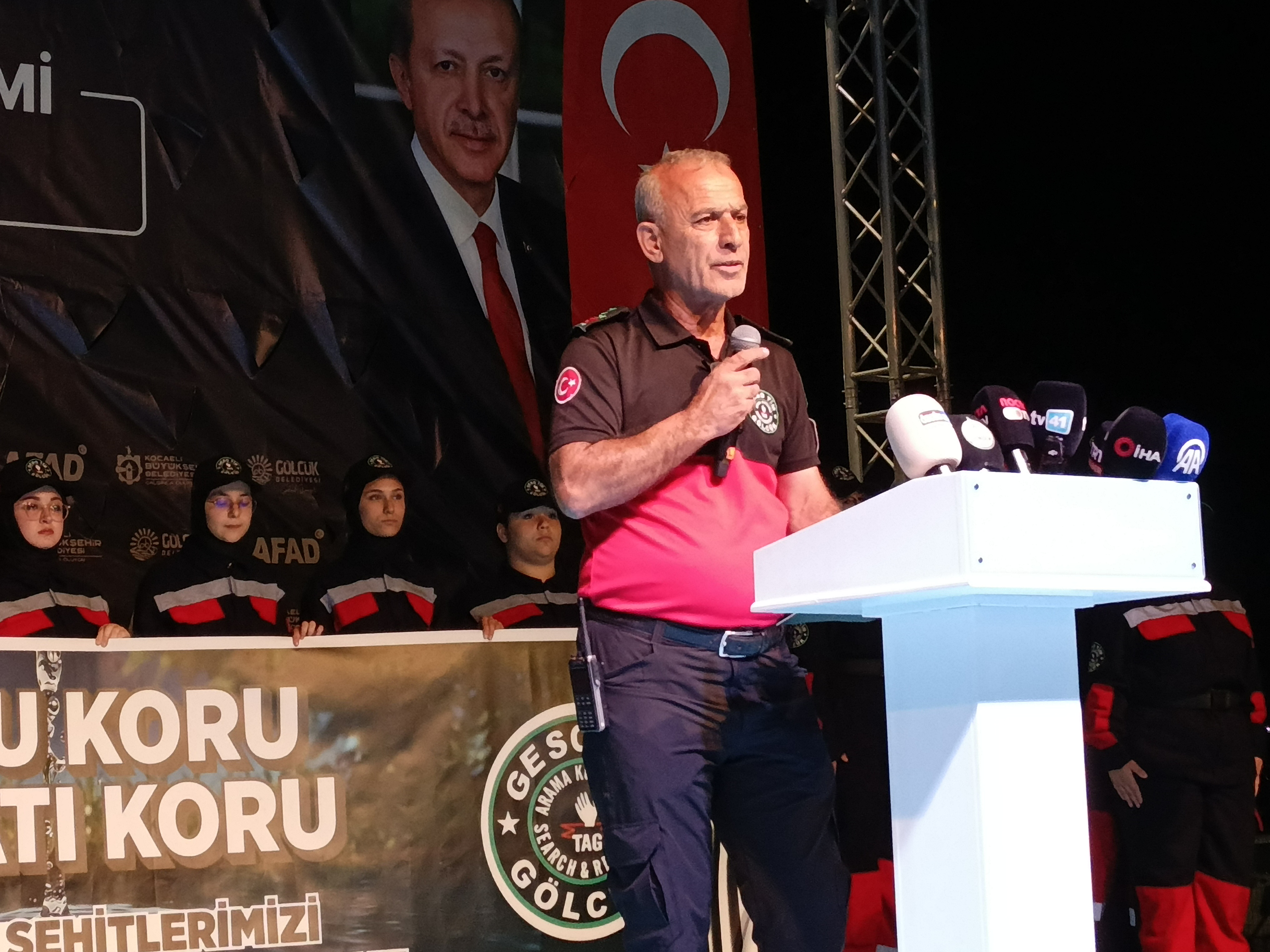 Karaloğlu, “AFAD az önce bahsettiğim gibi sivil toplumla çok iyi çalışıyor. Ama bir şey daha yapıyoruz. Bu akşam bir deprem anması dolayısıyla buradayız. Bizim artık AFAD gönüllülerimiz var. E-devlet üzerinden her biriniz AFAD gönüllüsü olmak için müracaat yapabilirsiniz. Orada online olarak ilk eğitiminizi alabilirsiniz. Daha sonra yüz yüze eğitimlerini de İl Afad Müdürlüklerinden tamamlayıp bizim gönüllümüz olabilirsiniz. Şu anda bizim 100 binin üzerinde gönüllümüz var ve bu arkadaşlar her türlü afette bizim en büyük destekçimiz ve yardımcımız oluyorlar. Bunu artırmanın gayreti içerisindeyiz. Bu akşam bir deprem anması dolayısıyla meydanda bulunan vatandaşlarımızın AFAD gönüllüsü olmasıyla ilgili de bir çağrıda bulunuyoruz. Artık afet deyince elbette ki sadece deprem değil, heyelandan su baskınına, orman yangınlarından çığ düşmesine kadar afet türü var. Bakın orman yangınları bundan on yıl, on beş yıl önce bu kadar olmuyordu. Olsa bu kadar büyük orman yangınları olmuyordu, köylerimize zarar vermiyordu. Ama dün, bugün yanı başımızda Karamürsel'imiz yandı. Bizim Türkiye'de orman yangını riski bakımından Kocaeli aslında riskli yerlerden birisi değil. Kocaeli, Sakarya, Bilecik ve Karabük. Ama bu sene bu saydığım illerin tamamında orman yangını oldu ve çok ciddi yangınlar oldu. Sakarya'da son otuz beş yıldır yangın olmamış. Orman yangını bu sene çok büyük iki yangın atlattılar. Bilecik’te köylerimiz yandı. Biz Sayın Bakanımızla ziyaret ettik. 700 yıllık Osmanlı köyü yandı. Arkadaşlar Bilecik'te 700 yıldır ormanın içerisinde yanmamış bir köy. Bu seneki orman yangınlarında maalesef yandı. Artık iklim değişikliği. Havanın çok sıcak olması, nemin çok düşük olması, rüzgarın çok fazla olması. Orman yangınlarını daha tehlikeli hale getiriyor” dedi.
