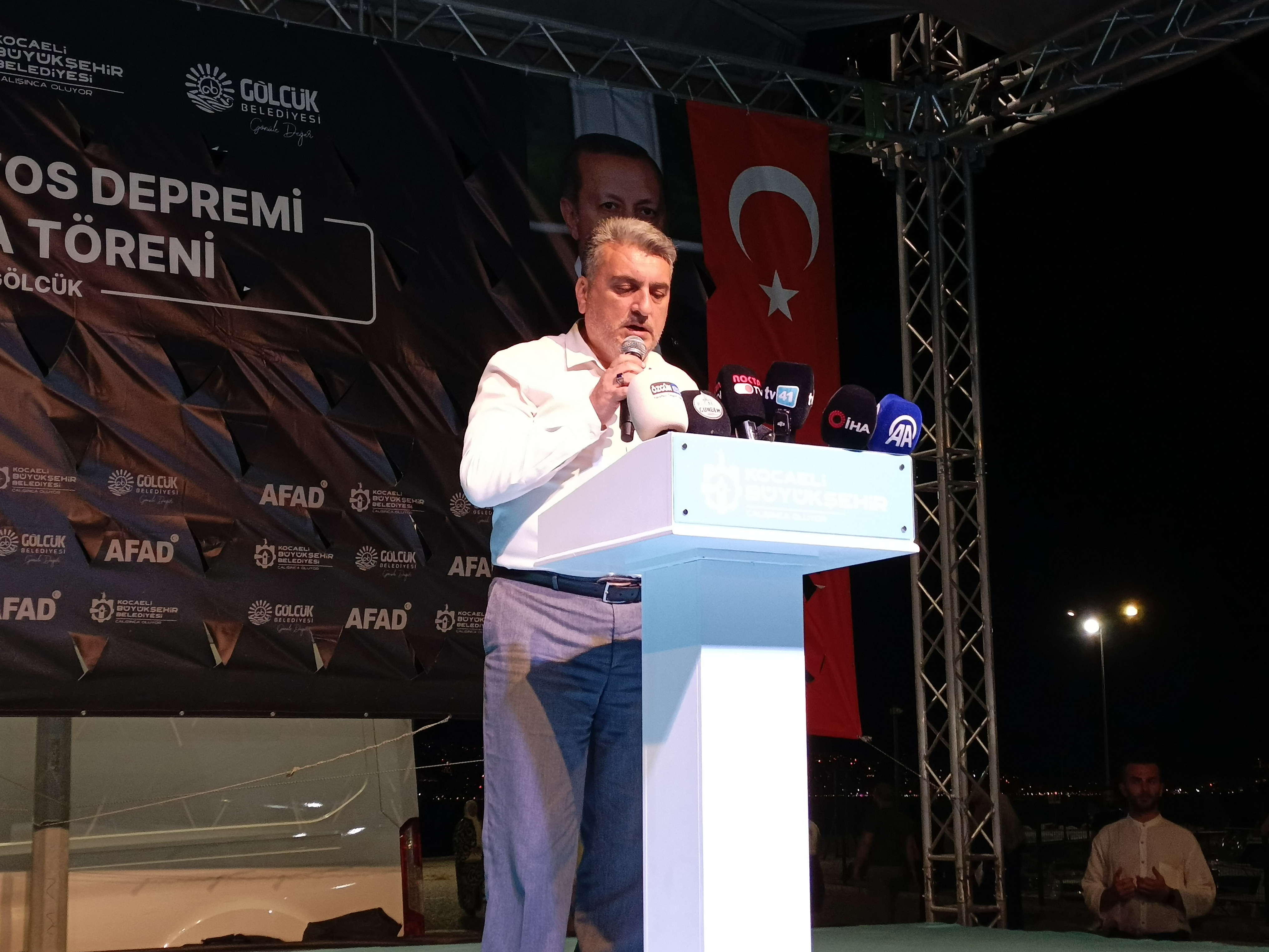 17 Ağustos 1999 Gölcük Depremi’nin 26. yıl anma programı, Kavaklı sahilindeki marinada yer alan deprem anıtının bulunduğu alanda, dün akşam yapıldı. Programa İçişleri Bakan Yardımcısı Münir Karaloğlu, AK Parti Genel Başkan Yardımcısı Çevre ve Şehircilik Politikaları Başkanı Sevilay Tuncer, Kocaeli Valisi İlhami Aktaş, Vali Yardımcısı Nuri Özder, Kocaeli Büyükşehir Belediye Başkanı Doç. Dr. Tahir Büyükakın, AK Parti Kocaeli Milletvekili Veysel Tipioğlu, AFAD Başkanı Ali Hamza Pehlivan, Gölcük Kaymakamı Müfit Gültekin, Gölcük Deniz Ana Üs ve Garnizon Komutanı Tuğamiral Yücel Korkut, Gölcük Belediye Başkanı Ali Yıldırım Sezer, İl Emniyet Müdürü Faruk Karaduman, İl Jandarma Komutanı Murat Bozkurt, Gölcük Cumhuriyet Başsavcısı İsmail Sarı, Japon Deprem Uzman Yoshinori Moriwaki, siyasi partilerin il ve ilçe başkan ve yöneticileri, arama kurtarma ekipleri, dernek ve sivil toplum kuruluşlarının başkan ve yöneticileri ile çok sayıda vatandaş katılım gösterdi.