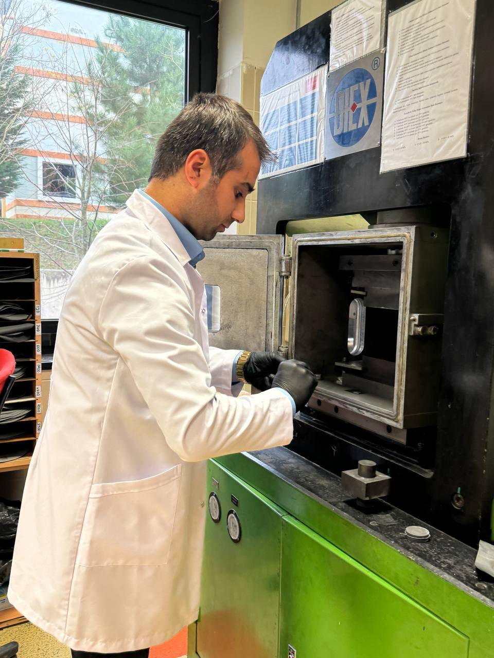 Bu doğrultuda raylı sistemlere yöneldiklerini, dip çamurundan balata malzemesi geliştirmeyi amaçladıklarını aktaran Yamanoğlu, lisans, yüksek lisans ve doktora öğrencilerinden oluşan 10 kişilik bir ekibin, sadece KOÜ’nün desteğiyle projeyi yürüttüğünü kaydetti. Yamanoğlu, İzmit Körfezi’nden çıkan dip çamurunun, TÜBİTAK ve farklı kurumlarda analizinin yapıldığını vurgulayarak, dip çamurunda zararlı bir bileşenin olmadığının belirlendiğini, 3 aylık çalışma sonunda balata ürettiklerini bildirdi. Dip çamurunun kurutma ve boyutlandırma işleminin ardından KOÜ’de üretilen özel metalik bileşimlerin tozuyla karıştırıldığını belirten Yamanoğlu, bu karışımın daha sonra yüksek sıcaklıkta vakum altında sinterlendiğini (metal ve/veya seramik tozlara termal enerji uygulanmasıyla yoğunluk kontrollü malzemeler geliştirme) anlattı.