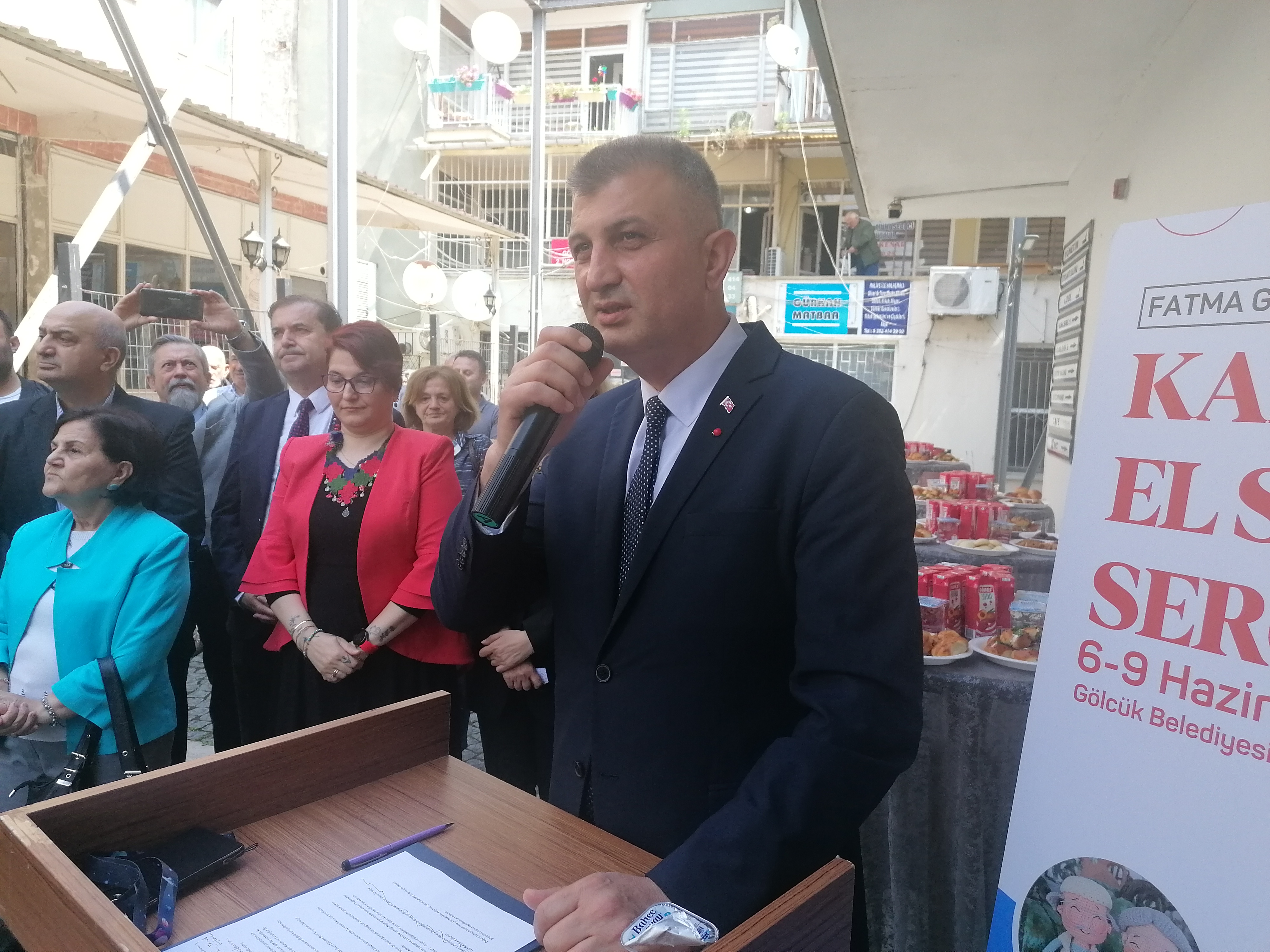 Gölcük Halk Eğitim Merkezi Müdürü Necmettin Türkmen, “Hayat Boyu Öğrenme Haftası etkinlikleri kapsamında, ilçemizde bir dizi etkinlikler yapıyoruz. Burada da Gölcük Belediyesi ve Gölcük Kent Konseyi ile işbirliği yaparak açtığımız kursların sene sonu sergisini sizlerin beğenisine sunuyoruz. Burada 6 öğretmenimiz, yıl boyunca kurslar açtı, çeşitli etkinlikler yaptı. Şu an burada da Fatma ve Sevil hocalarımızın sergilerini ziyaret edeceğiz. Hepiniz tekrar hoş geldiniz, ayağınıza sağlık, teşekkür ederim” dedi.