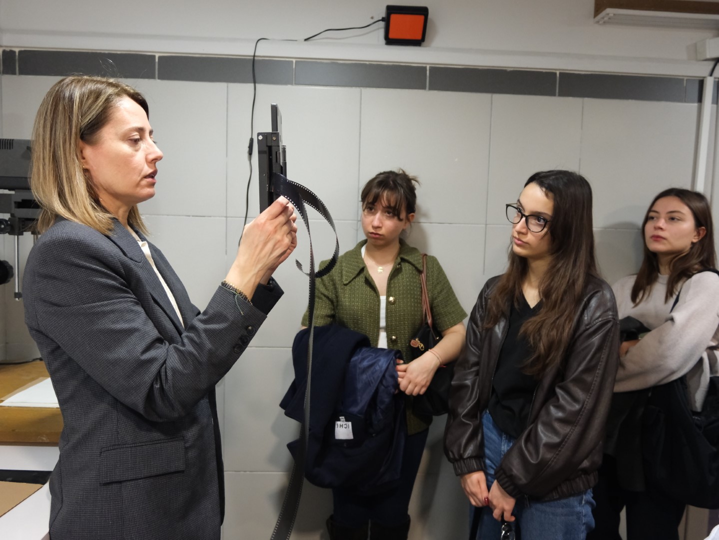 Programın uygulamalı bölümünde öğrencilere karanlık oda ortamı tanıtıldı. Eğitmen, karanlık odanın çalışma prensiplerini, film banyosu ve baskı tekniklerini adım adım uygulamalı olarak göstererek katılımcılara aktardı. Böylece öğrenciler, fotoğrafın üretim aşamalarına dair teknik süreçler hakkında detaylı ve doğrudan bilgi edinme fırsatı buldu.