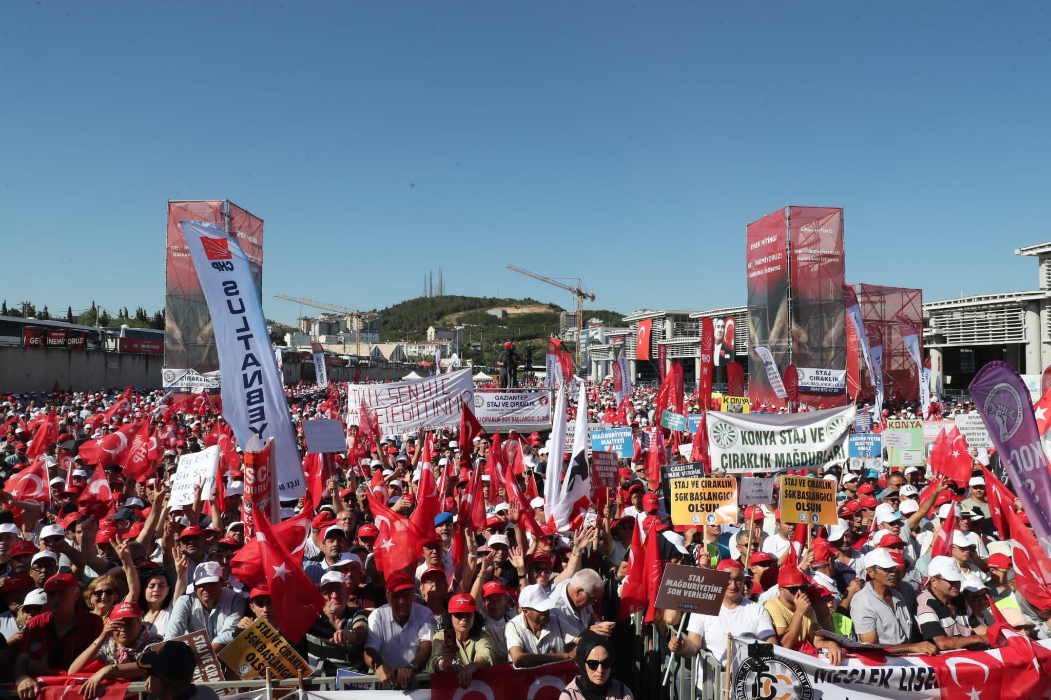 CHP Genel Başkanı Özgür Özel, Gebze’de düzenlenen “Emek Mitingi”nde yaptığı açıklamada, “Uyarım şudur; geçim olmazsa, seçim olur. Ey Recep Tayyip Erdoğan, ey Devlet Bahçeli, ey Cumhur İttifakı Gebze’yi duy. Ya geçim, ya seçim” dedi