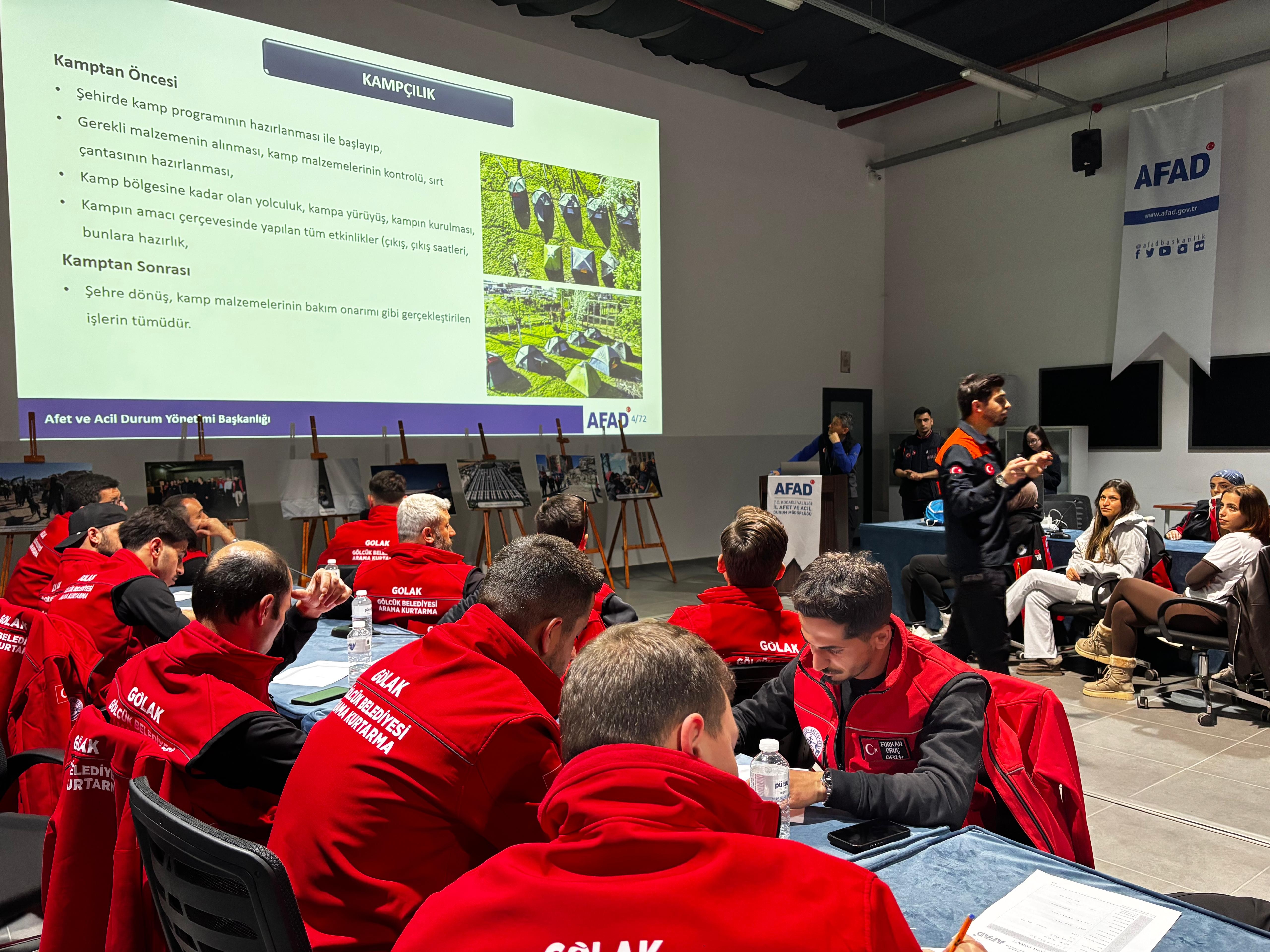 Afet ve Acil Durum Yönetimi Başkanlığı (AFAD) uzman ekiplerince verilen ve 2 gün süren eğitimlerde, GÖLAK ekiplerinin yanı sıra Ford Otosan Arama Kurtarma ve Nezir Arama Kurtarma ekipleri de katıldı. AFAD’ın Kartepe’de bulunan yerleşkesinde teorik eğitimlerin ardından arama kurtarma ekipleri, Gölcük Yazlık Kadırga’da kamp kurarak, kamp şartlarında konaklama tecrübesi edindiler.