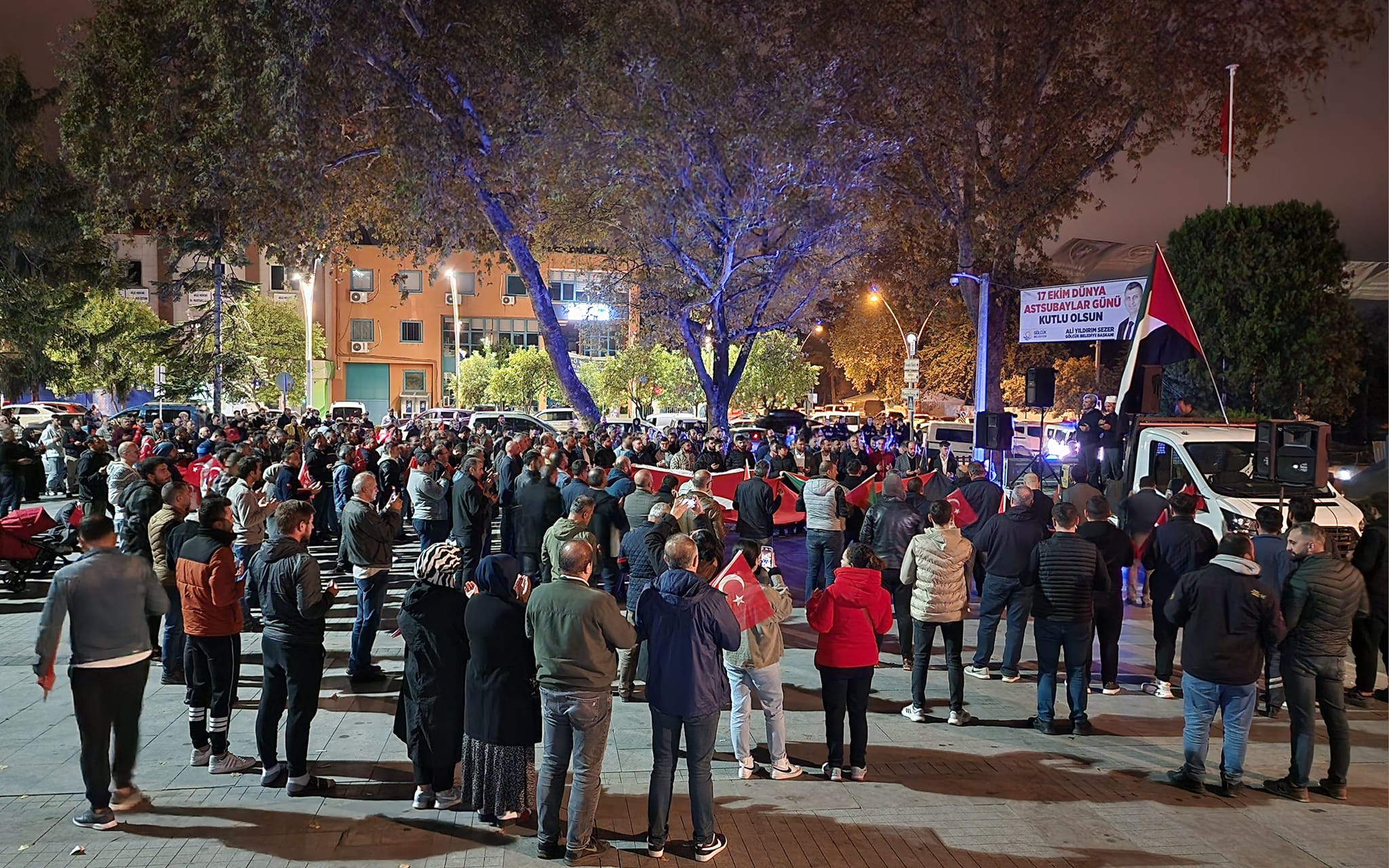 Gölcüklüler, 500 kişinin yaşamını yitirmesine neden olan İsrail'in Gazze'deki El-Ehli Baptist Hastanesi'ne yönelik bombalı saldırısını protesto etmek için Anıtpark’ta bir araya geldi. Ellerine Türkiye ve Filistin bayraklarını alan Gölcük halkı, İsrail’in katliama varan saldırılarını protesto etti. Eyleme Gölcük Belediye Başkanı Ali Yıldırım Sezer, AK Parti Gölcük İlçe Başkanı Kemal Yavuz, MHP Gölcük İlçe Başkanı Derya Çavdar ve çok sayıda vatandaş katıldı. Eylemde İsrail aleyhine sloganlar atan Gölcüklüler, saldırılar sonucu şehit olan Filistinliler için de dualar etti.