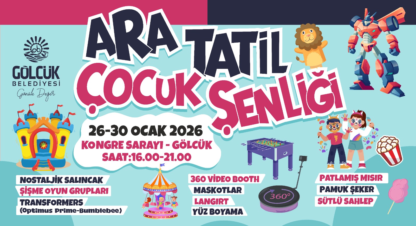 Gölcük Belediyesi, 2025-2026 eğitim-öğretim yılının yarıyıl tatiline giren öğrenciler için dopdolu bir etkinlik takvimi hazırladı. 21-31 Ocak tarihleri arasında düzenlenecek Ara Tatil Tiyatro Şenliği ve Ara Tatil Çocuk Şenliği’nde çocuklar, tatilin tadını çıkaracak
