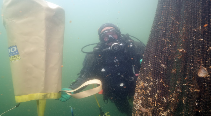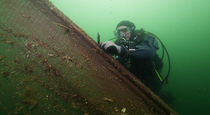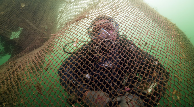 Gölcük’te Marmara Denizi’nde biriken yaklaşık 5 ton hayalet ağın temizlenmesi, su altında kayda alındı