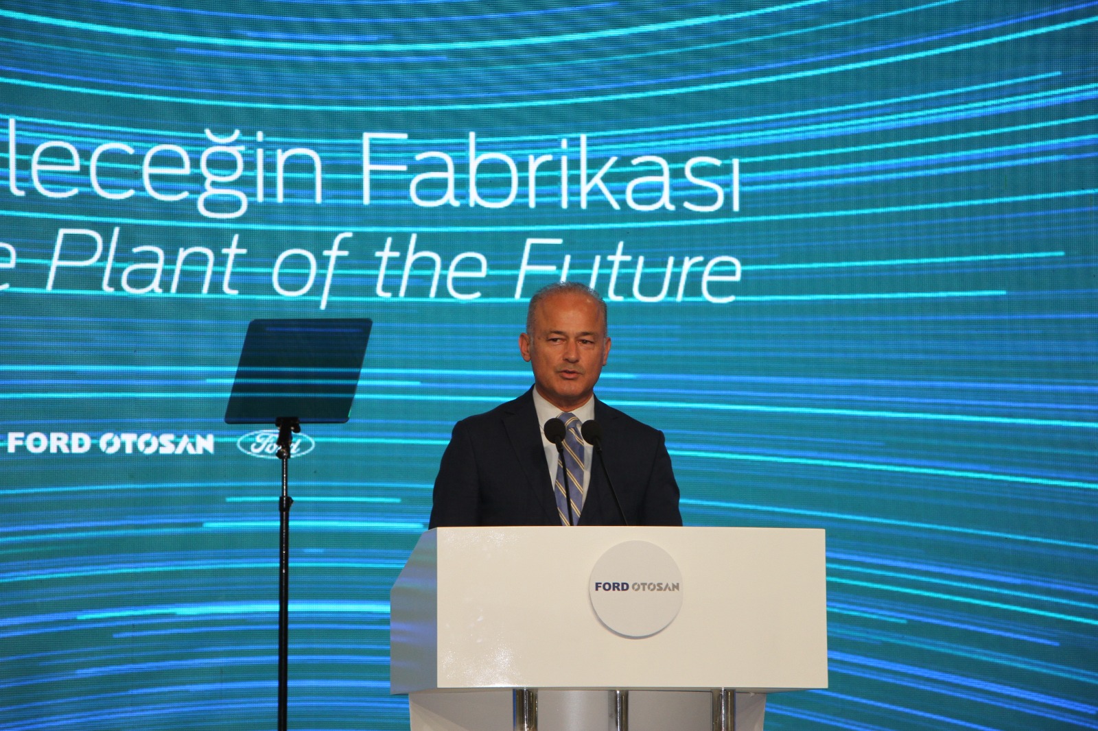 Programda ilk olarak konuşan Ford Otosan Genel Müdürü Güven Özyurt, "Bugün Kocaeli tesislerimiz sadece Türkiye'nin değil tüm Avrupa'nın merkez konumunda. Ticarete yön veriyoruz bir anlamda. Tüm bunlar tesadüf olmadı. Ar-Ge ve üretim odağımızın olduğunu belirtmeliyim. Değişmeyen tek şey değişimin kendisi. Her şeyden önce insan kaynağımız diyerek çalışanlarımıza yatırım yapıyoruz. ‘Gelecek Şimdi’ vizyonuyla otomotiv ekosistemini dönüştürmek üzere uzun dönem sürdürülebilirlik hedeflerini belirleyen ve adım adım ‘karbon nötr’ olma yolunda ilerleyen Ford Otosan, Yeniköy Fabrikasında devreye aldığı yenilikçi, çevre dostu ve enerji verimliliği yüksek uygulamalarıyla fark yaratıyor. Yeniköy, Ford tesisleri içerisinde ve Türkiye'nin otomotiv sektöründe birer ilki teşkil eden öncü uygulamalarıyla dikkat çekiyor. Her birinize en içten teşekkürlerimi sunuyorum. Geleceğin Fabrikası Yeniköy hepimize hayırlı olsun" ifadelerini kullandı.