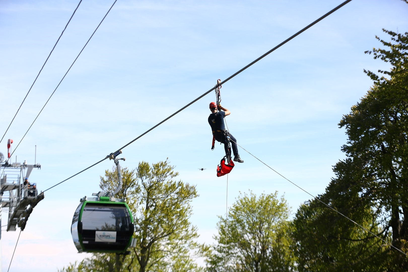 İtfaiyeden teleferikte nefes kesen tatbikat