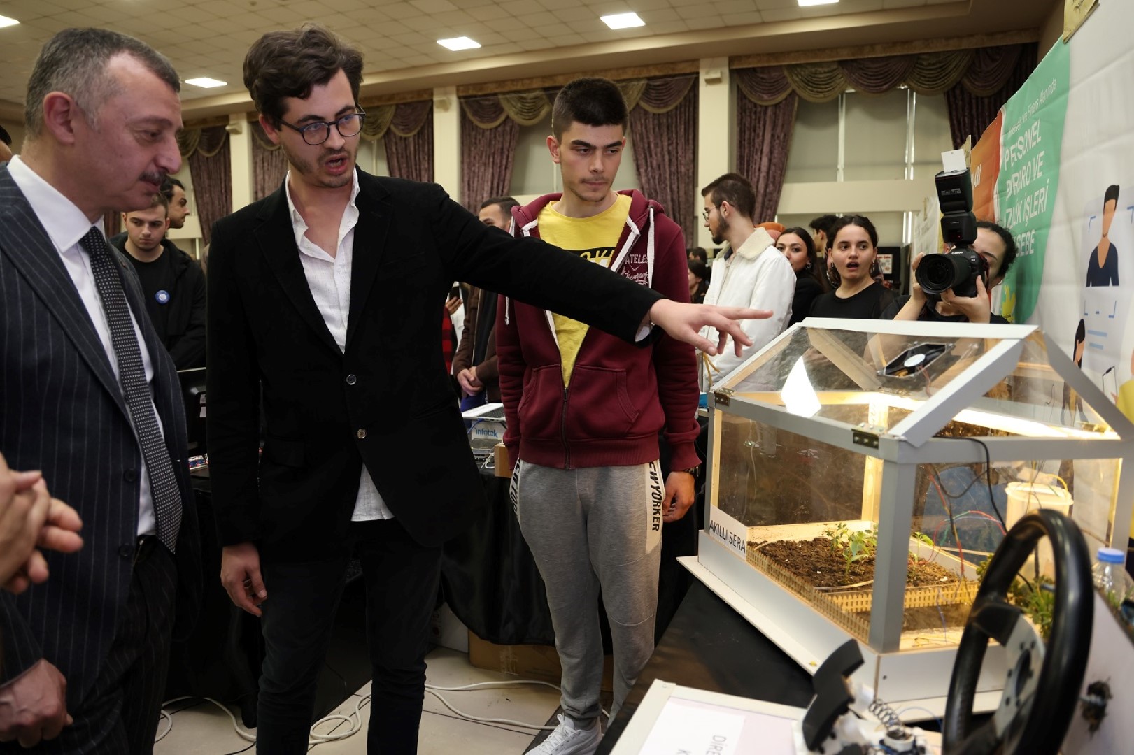 Başkan Büyükakın sergi alanında KODELİ projesinde yer alan bilişim teknolojileri kursiyerlerinin hazırladığı birbirinden ilginç teknolojik icatları inceleyerek kursiyerlerden bilgi aldı. Endüstriyel Bant Sistemi, Akıllı Cop, Deprem Sensörü, Akılı Ev Sistemi, Alkış Yap Işık Yansın, Park Sensörü, İndüksiyon Sistemi, İndüksiyon Isıtıcılı Kombi Sistemi, Robot Kol, CNC Çizici (plotter), CNC, Engelden Kaçan Robot, Radar Sistemi, Akıllı Sera, İnsansı Robot Tasarımı, Piyano, Güneş Paneli, Şarz Devresi gibi yapılan çalışmaları oldukça beğenen Büyükakın, KODELİ kursiyerleri ile bir süre sohbet ederek destek sözü verdi.