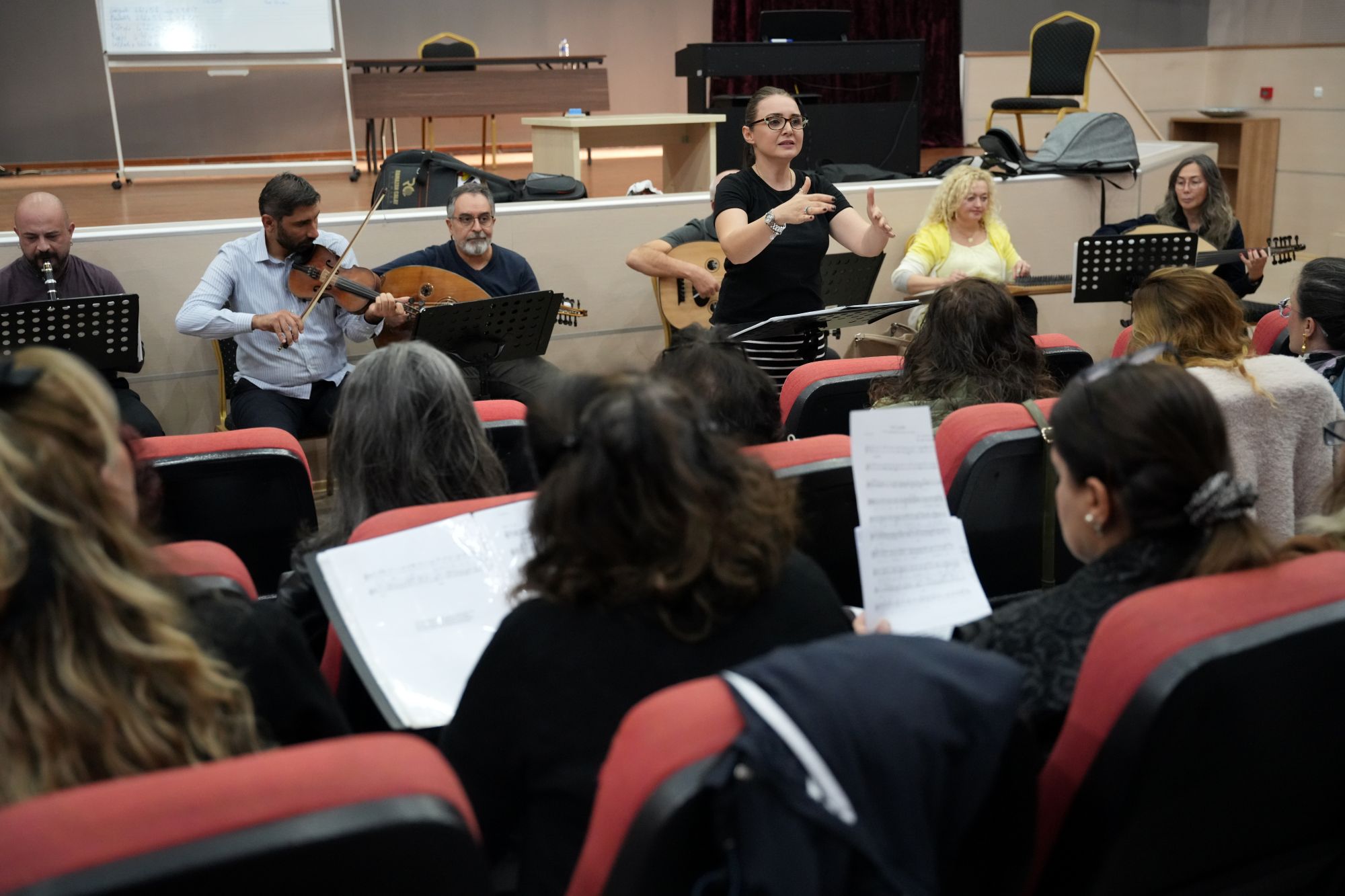 Öte yandan Türk Sanat Müziği Koro Seçmeleri öncesinde, söz konusu koronun rutin çalışması gerçekleştirildi. Bu koronun üyesi olmak isteyen vatandaşlar provayı büyük bir ilgi ile takip etti. Adaylar ayrıca, Büyükşehir Belediye Konservatuvarı’nın titiz sanat eğitimini ve koronun disiplinli çalışmasını yakından görme fırsatı buldu.