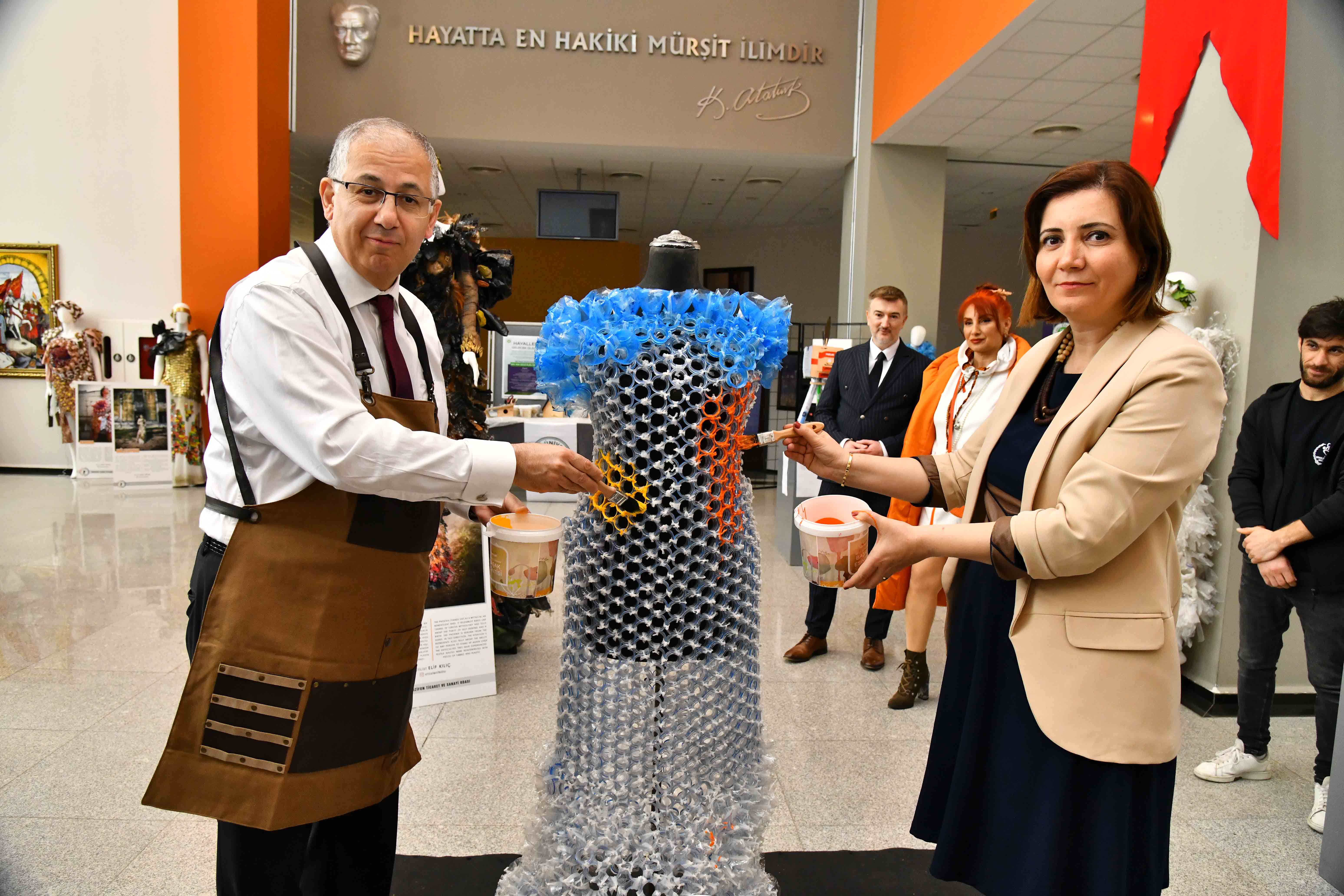 Dünyayı kurtarma adına yapılan en anlamlı işbirliğinin bu olduğuna vurgu yapan Rektör Prof. Dr. Nuh Zafer Cantürk ise, “İsrafı önlemek, kaynakları verimli kullanmak, atık miktarını azaltmak ve atıkları geri kazanmak bugünün dünyasında hiç olmadığı kadar büyük önem taşımaktadır. Sıfır Atık yaklaşımı bu hususta önemli bir yere sahiptir. Tüm bu sebeplerle çok önemli bir farkındalık projesi için bugün bir araya toplanmış bulunuyoruz. Atık malzemelerin kıymetli sanatçılarımızın elinden geçerek nasıl topluma yararlı eserlere dönüştürüldüğünü görüyoruz. Unutmamız gerekir ki yeryüzü bize atalarımızdan miras kalmadı, çocuklarımızdan ödünç aldık. Çocuklarımıza daha verimli kaynaklar ve güzel bir dünya bırakabilmek umuduyla, bu serginin hazırlanmasında emeği geçen herkese şükranlarımı sunuyorum” dedi.