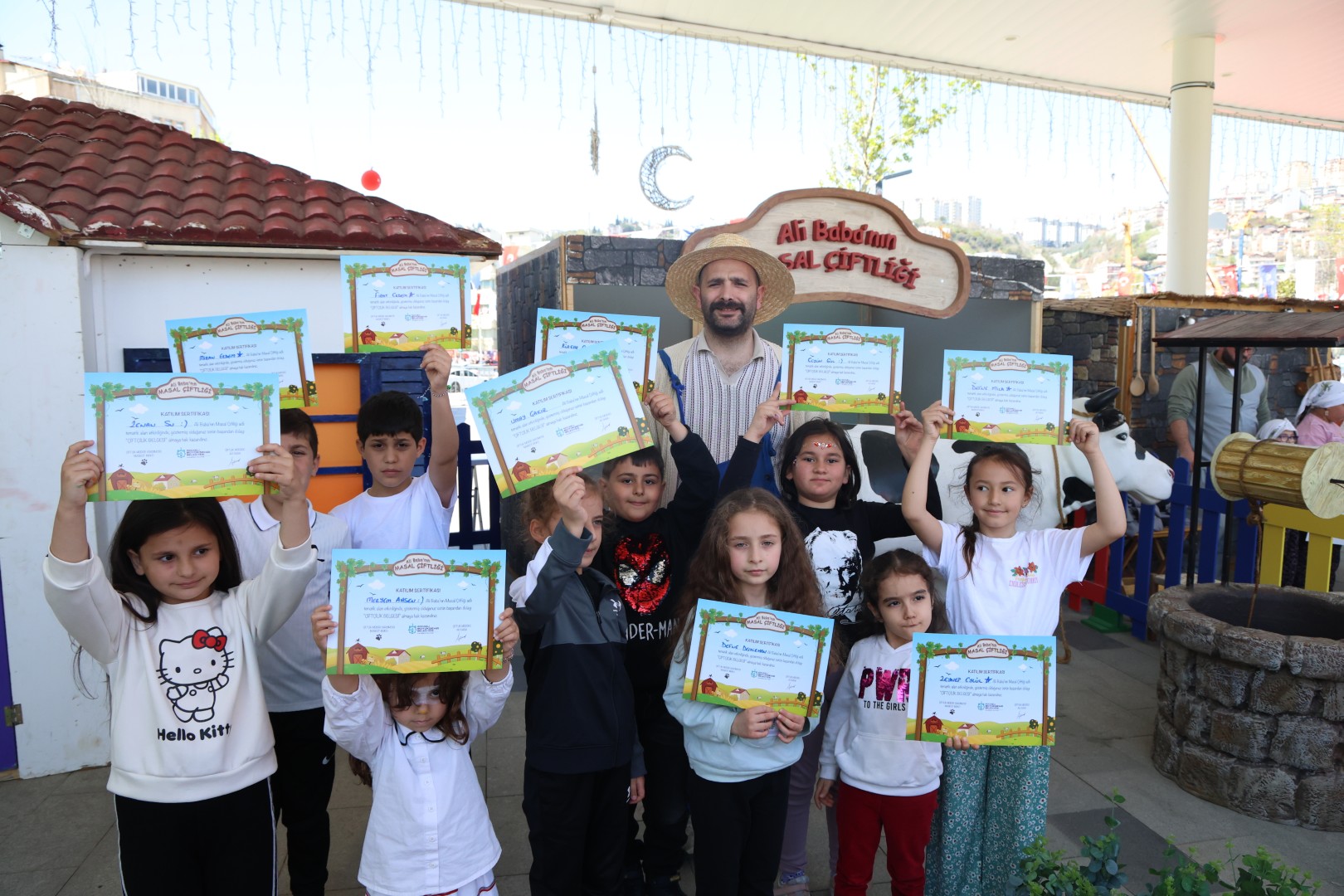 Bir diğer ilgi gören alan “Ali Baba’nın Masal Çiftliği Atölyesi” ise çocuklara doğayla iç içe, masalsı bir ortam sundu. Çiftlik yaşamını yakından tanıyan çocuklar, etkinlikler sayesinde hem eğlendi hem de doğal yaşam hakkında farkındalık kazandı. Gün sonunda katılımcılara sertifikaları da verildi. 23 Nisan’a özel hazırlanan bu etkinliklerle çocukların kültürel değerleri tanıması, üretim süreçlerini deneyimlemesi ve doğayla bağ kurması amaçlandı. Gün boyu süren etkinlikler, ailelerin katılımıyla bayram coşkusunu daha da artırdı.