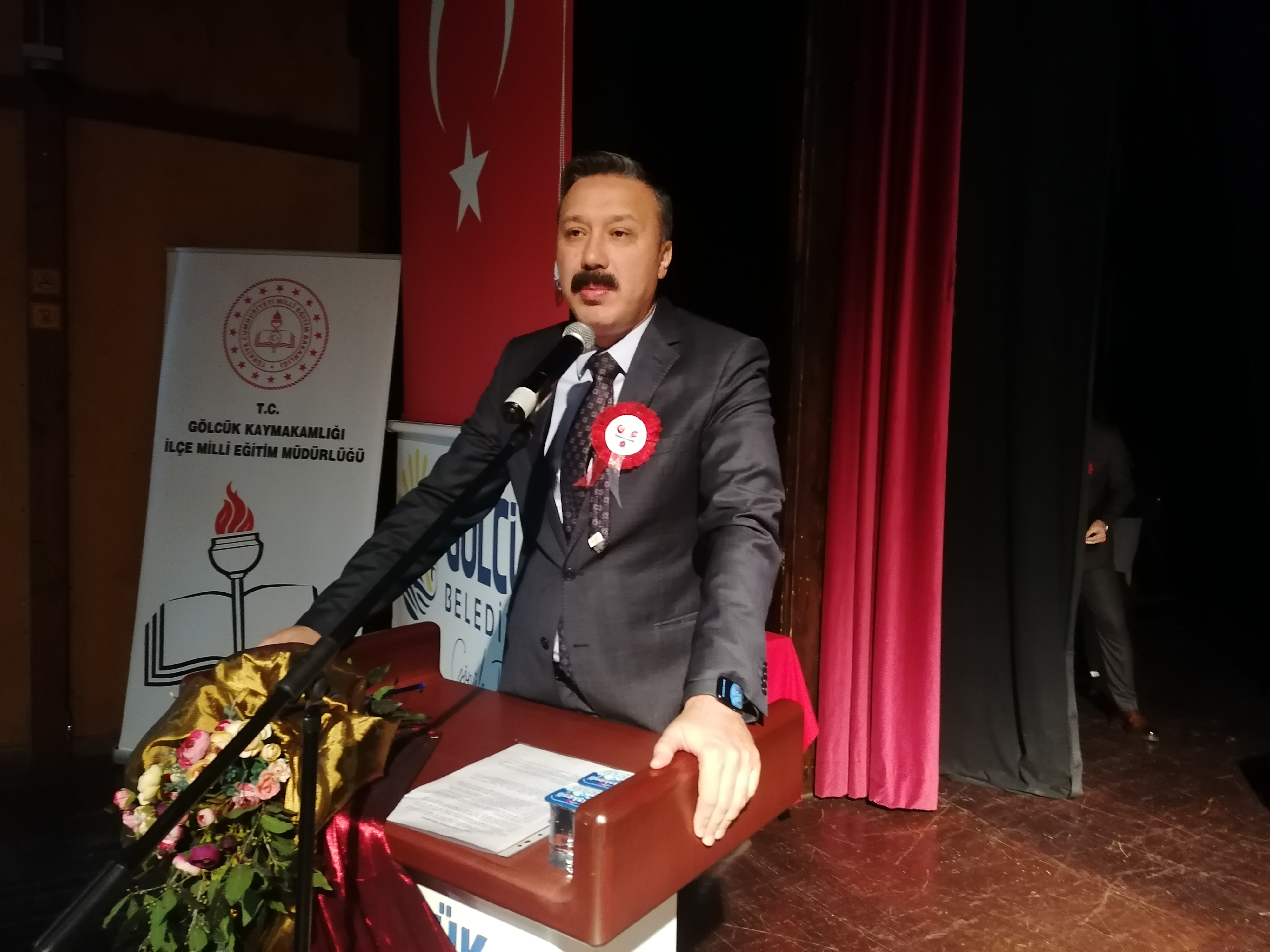 Günün ilk konuşmasını yapan Gölcük İlçe Milli Eğitim Müdürü Caferi Tayyar Mert, “24 Kasım Millet Mektepleri’nin açılışı ve Gazi Mustafa Kemal Atatürk’ün 24 Kasım 1928 tarihinde Başöğretmen sıfatı alması vesilesiyle 1981 yılından beri Öğretmenler Günü olarak kutlanmaktadır. Öğretmenlik, insanlık tarihinin en önemli mesleğidir. Öğretmenlerimiz, sabah evden çıkarken işe gidiyorum demez, okula gidiyorum der. Öğretmenlik mesleği, her şeyden önce bir ideal ve bir gaye mesleğidir. Bir öğretmenin en önemli özelliği, sevgi dolu yüreği ve adanmışlık ruhudur. Sevgi dolu bir öğretmen, ışık demektir. O yeri doldurulmaz öğretici, eserine kıymet biçilemeyen bir varlık, kendini tüketerek etrafını aydınlatan bir mum, gerçek ve idealin üstadı, dünyanın en büyük sorumluluğunun sahibidir. Başöğretmen Gazi Mustafa Kemal Atatürk’ün ‘Öğretmenler, yeni nesil cumhuriyetin fedakar öğretmen ve eğitimcilerini sizler yetiştireceksiniz. Yeni nesil, sizin eseriniz olacaktır’ demiştir. Mevlana’yı, Yunus Emre’yi, Haccı Bektaş-ı Veli’yi, Ahmet Yesevi’yi, Mimar Sinan’ı yetiştiren hep bir öğretmendir. Alparslan’ı, Fatih’i, Yavuz’u ve Mustafa Kemal Atatürk’ü yetiştiren hep bir öğretmendir. Öğretmen, insanı beşikten alıp mezara kadar götüren ve teslim eden, dünyanın en büyük mesuliyetine sahip bir insandır. Kaderimizin hakikatinin işleyicisi, karakterimizin yapıcısı, kalbimizin çelebildiği her yönde de bir nevi kurucusudur” dedi.