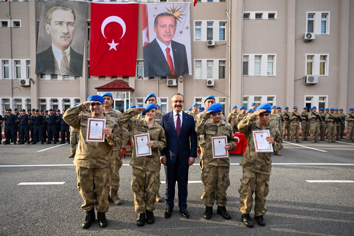İl Jandarma Komutanı J. Alb Murat Bozkurt’un konuşmasının altını çizen ve hitaplarına devam eden Vali Yavuz: “Kıymetli Albayımızın da ifade ettiği gibi ‘Biz ordusu olan bir millet değil, kendisi ordu olan bir milletiz.’ Bu vesileyle biz bir gazayı düğün ve şenlik günü olarak kabul ederiz, bize ihtiyaç duyulduğunda düşünmeden sefere çıkarız. Vatanımız, bayrağımız ve kutsal değerlerimiz için canımızı seve seve feda ederiz. Çünkü biz, ‘Allah yolunda öldürülenlere “ölüler” demeyin, zira onlar diridirler, fakat siz onu anlayamazsınız, idrak edemezsiniz’ diyen yüce Allah’ın kulları, İslam dininin mensupları ve vatan sevgisinin imandan geldiğini söyleyen Hz. Peygamberimizin ümmetiyiz. Bu inanç ve anlayışla biz devletler kurduk, yaşattık. Bu vatan için canlarını feda etmeye hazır milyonlarca evladımız var hamdolsun. Bu inanç ve bu kararlılık kıyamete kadar bizi hür ve bağımsız yaşatacak anlayışı da ortaya koyar. Bu vesileyle evlatlarımızı yetiştiren anne ve babalara bir kez daha minnet ve şükran duygularımı ifade ediyor, evlatlarımıza sağlık ve afiyet diliyor, bundan sonraki yaşamlarında her şeyin gönüllerince olmasını temenni ediyorum” diyerek konuşmasını sonlandırdı.