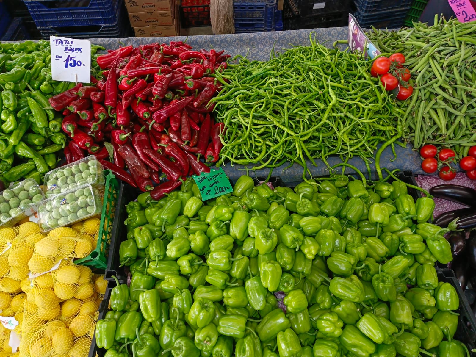 Semt pazarında sebze ve meyve fiyatları şu şekilde oldu: Patates kilo 15-40 lira arası, soğan kilo 15-20 lira arası, biber çeşitleri kilo 150-200 lira arası, salatalık kilo 40-50 lira arası, domates kilo 100-120 lira arası, patlıcan kilo 50-60 lira arası, kabak kilo 50-60 lira arası, yerli muz kilo 90-100 lira arası, mandalina kilo 40-50 lira arası, portakal kilo 60 lira, pırasa kilo 50-60 lira arası, havuç kilo 40-50 lira arası, karalahana demet 20 lira, pazı demet 20 lira, kıvırcık 70-80 lira arası, limon file 50-60 lira arası, kilo 100 lira, taze soğan 40 lira, maydanoz 20 lira, tere 25 lira, kuzu kulağı 25 lira, roka 20 lira, semizotu 40 lira, karnabahar kilo 100 lira, brokoli kilo 150 lira, sultaniye bezelye kilo 200 lira, taze fasulye kilo 200 lira, bakla kilo 150 lira, çilek kilo 100-150 lira arası, erik paket 150 lira. Meltem ALKAN