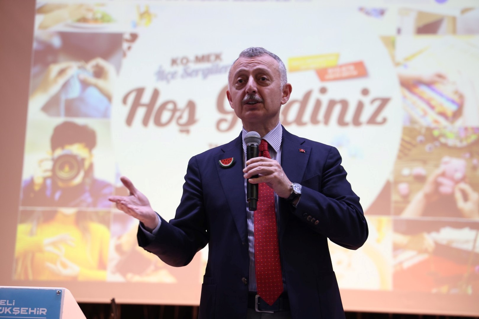 Açılışta son olarak söz alan Büyükşehir Belediye Başkanı Büyükakın, “KO-MEK meslek ve sanat eğitimlerinin yanı sıra sosyal sorumluluk projeleriyle de ön plana çıkıyor. Özellikle pandemi döneminde olmak üzere yardım ve vefa projeleri düzenleyerek adından söz ettirdi. Bu dönemde başka bir hassasiyetimiz var. Herkes kadınların ve çocukların korunması gerektiği konusunda nutuklar atıyor ama Filistin konusunda dünya adeta 3 maymunu oynuyor. Dünyada nedense Müslüman olmayan ülkelerde savaş olunca hassasiyet artıyor ama ezilen öldürülen Müslüman kadınlar ve çocuklar olunca kimse sesini çıkartmıyor” yorumunu yaptı.