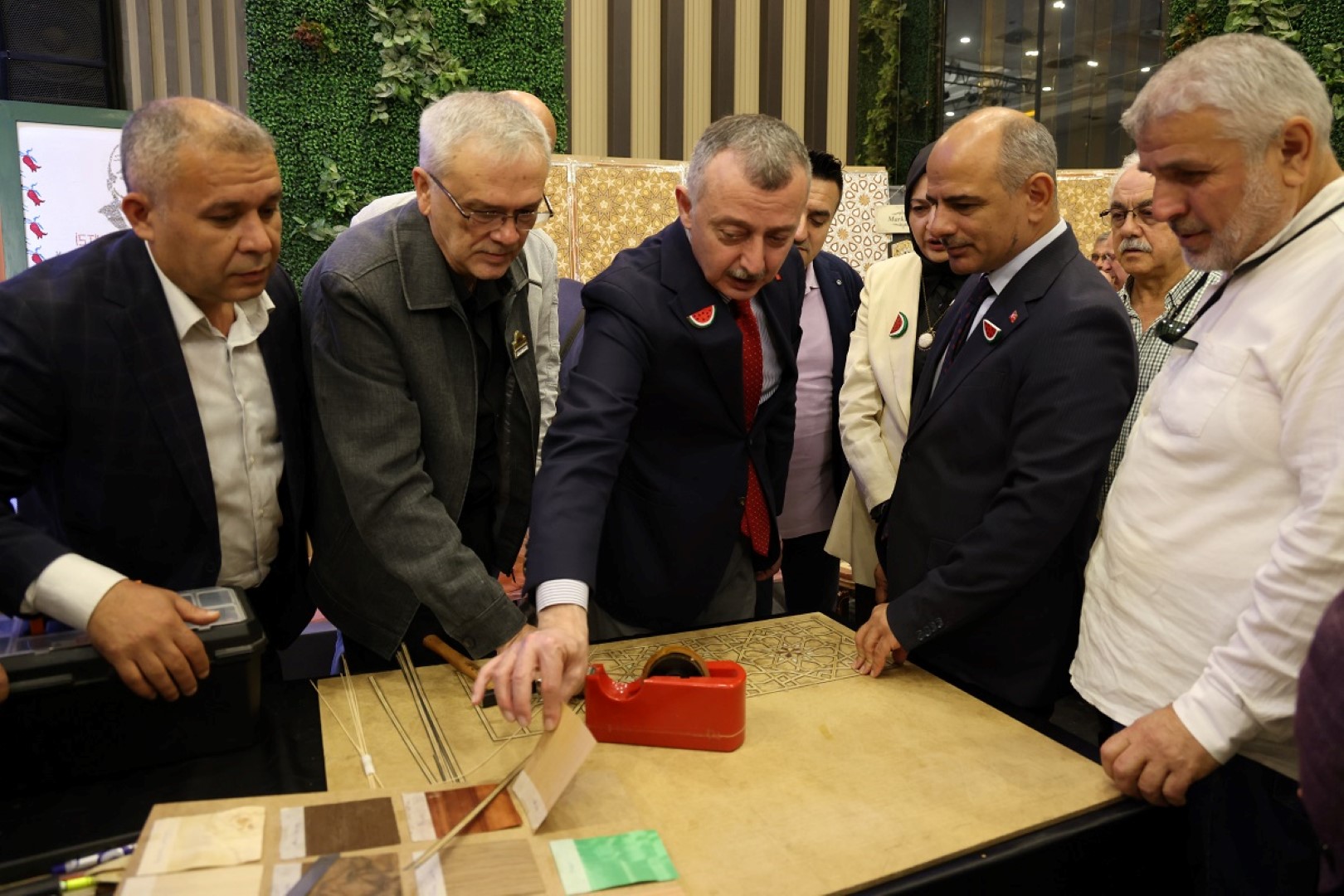Körfez KO-MEK sergisinin açılışında kursiyerlerin yaptığı ürünleri inceleyen Kocaeli Büyükşehir Belediye Başkanı Tahir Büyükakın, Kahraman Anneler konseptine hayran kaldı