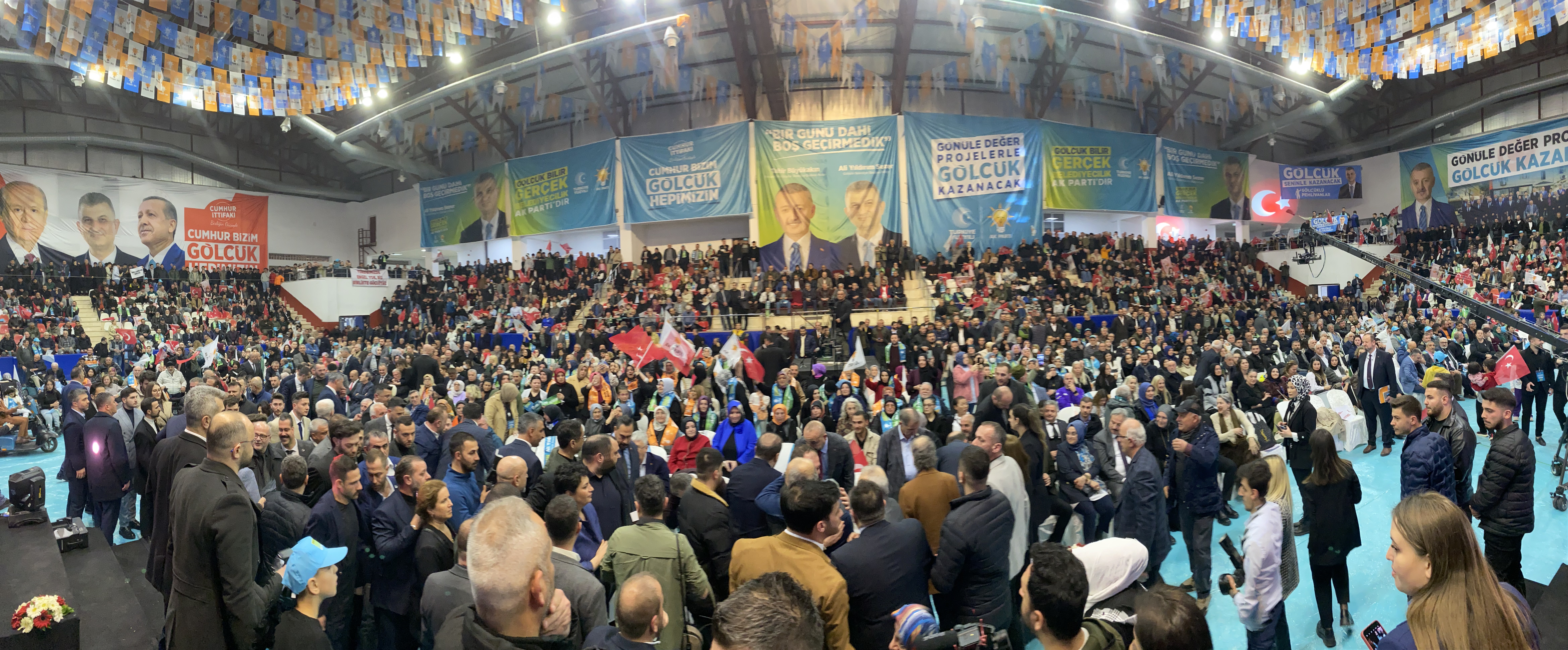 Cumhur İttifakı üyeleri AK Parti, Milliyetçi Hareket Partisi (MHP) ve Büyük Birlik Partisi’nin (BBP) Gölcük Belediye Başkan Adayı Ali Yıldırım Sezer’in Seçim Beyannamesi ve Meclis Üyeleri Aday Tanıtım Programı, dün akşam 17 Ağustos Kapalı Spor Salonu’nda, yoğun katılımla gerçekleştirildi. Toplantıya AK Parti MKYK Üyesi İlyas Şeker, AK Parti Kocaeli İl Başkanı Şahin Talus, Kocaeli Büyükşehir Belediye Başkanı ve Cumhur İttifakı Büyükşehir Belediye Başkan Adayı Doç. Dr. Tahir Büyükakın, Gölcük Belediye Başkanı ve Cumhur İttifakı Belediye Başkan Adayı Ali Yıldırım Sezer ve ailesi, MHP Kocaeli İl Başkanı Murat Nuri Demirbaş, Geçmiş Dönem Büyükşehir Belediye Başkanı İbrahim Karaosmanoğlu, geçmiş dönem il ve ilçe başkanları, geçmiş dönem belediye başkanları, AK Parti İlçe Başkanı Kemal Yavuz, MHP İlçe Başkanı Derya Çavdar, BBP İlçe Başkanı Şahin Akpınar, Cumhur İttifakı üyesi partilerin il ve ilçe yöneticileri, dernek ve sivil toplum kuruluşlarının başkan ve yöneticileri, partililer ve çok sayıda vatandaş katılım gösterdi. Programda ilk olarak Gölcük Belediye Başkanı Ali Yıldırım Sezer’in 2019-2024 yılları arasındaki çalışmalarını anlatan video sunumu gerçekleştirildi.