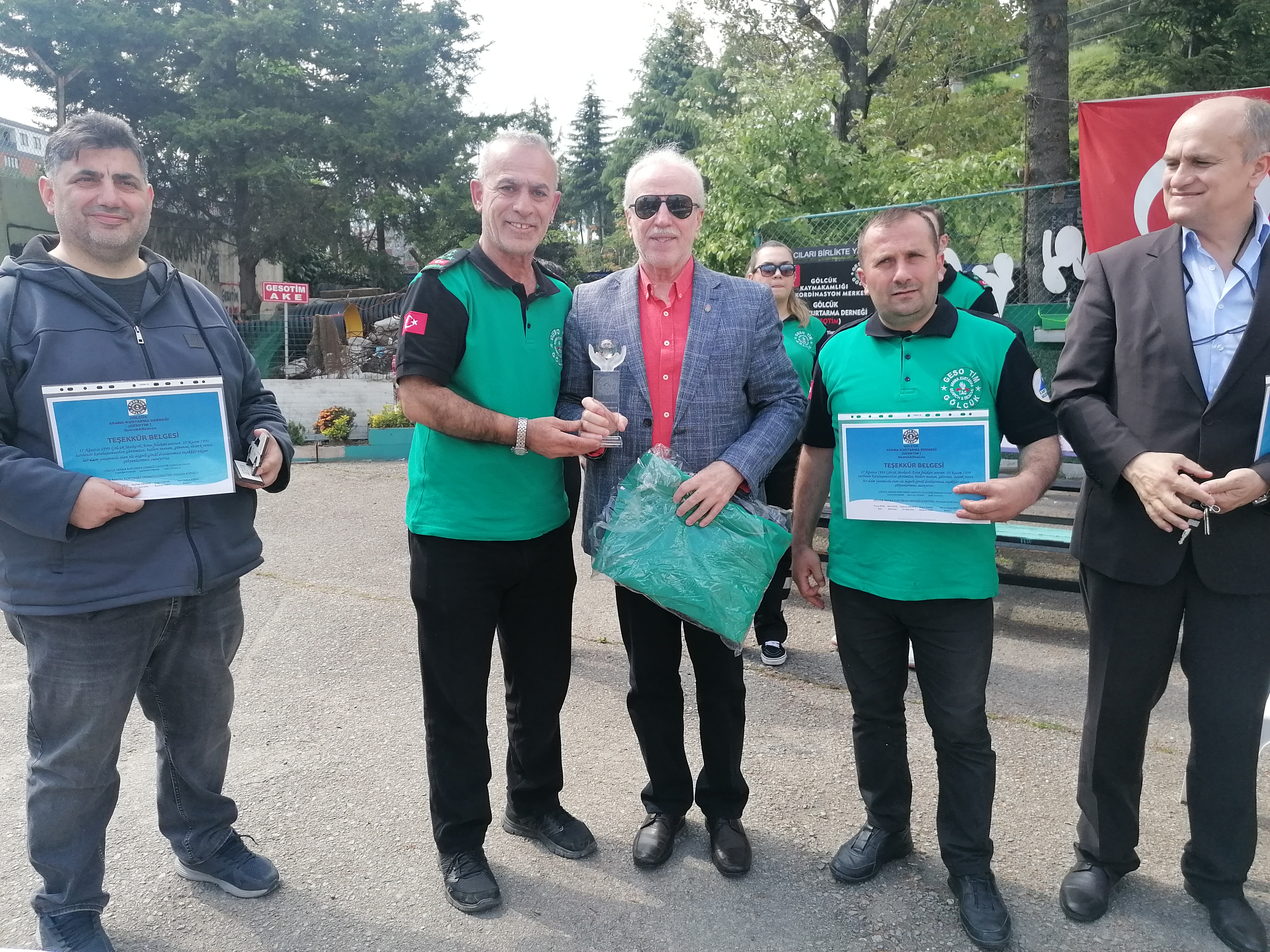 Gölcük Arama Kurtarma Derneği GESOTİM, 6 Şubat tarihinde Kahramanmaraş merkez üslü meydana gelen depremlerde arama kurtarma faaliyetlerine katılmış, geçtiğimiz günlerde de Ankara’da düzenlenen programda Devlet Üstün Fedakarlık Madalyası ile onurlandırılmıştı. Dün bu konu hakkında GESOTİM dernek binasının içinde bulunduğu alanda bir program düzenlendi. Programa, 17 Ağustos 1999’da Gölcük’ün belediye başkanı olan İsmail Barış, Gölcük Arama Kurtarma Derneği GESOTİM Başkanı Necmi Kocaman, dernek eğitimcileri, üyeleri ve davetliler katılım gösterdi.