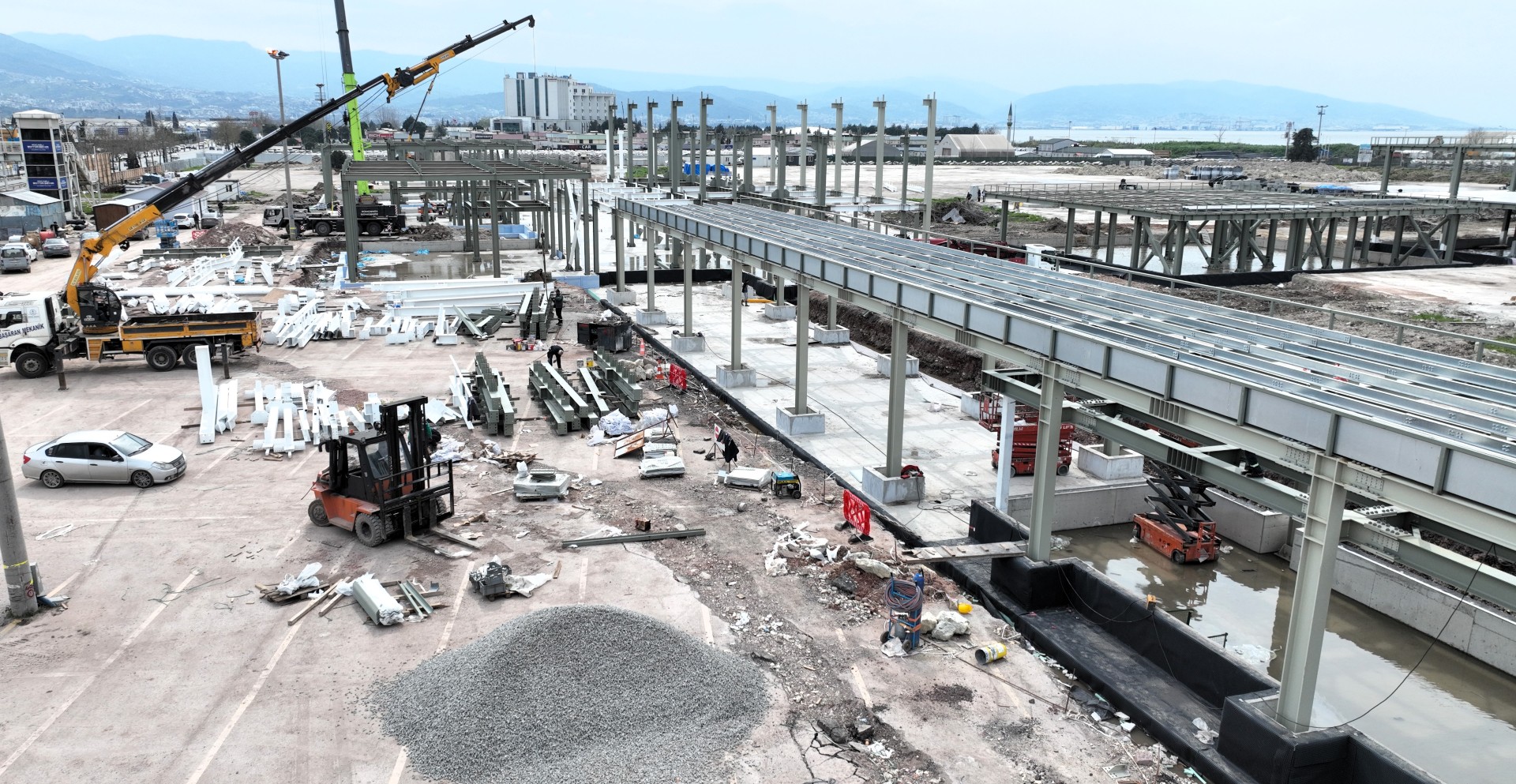 Büyükşehir Belediyesi, birçok çalışmayı tamamlayarak yapıya şekil vermeye devam ediyor. Etap 3 kapsamında konferans salonu, dijital gençlik merkezi ve eğitim sınıflarının çelik montajı ile su deposu ve betonarme imalatları sürdürülüyor. Gastronomi binasında trapez döşeme ve OG hattı deplasesi devam ederken, girişimcilik ve gastronomi binalarında kör kalıp imalatları iş takvimine uygun şekilde ilerliyor. Kütüphane ve müzeyi bünyesinde barındıran etap 4’te ise çelik montaj çalışmalarına yakın zamanda başlanması planlanıyor.