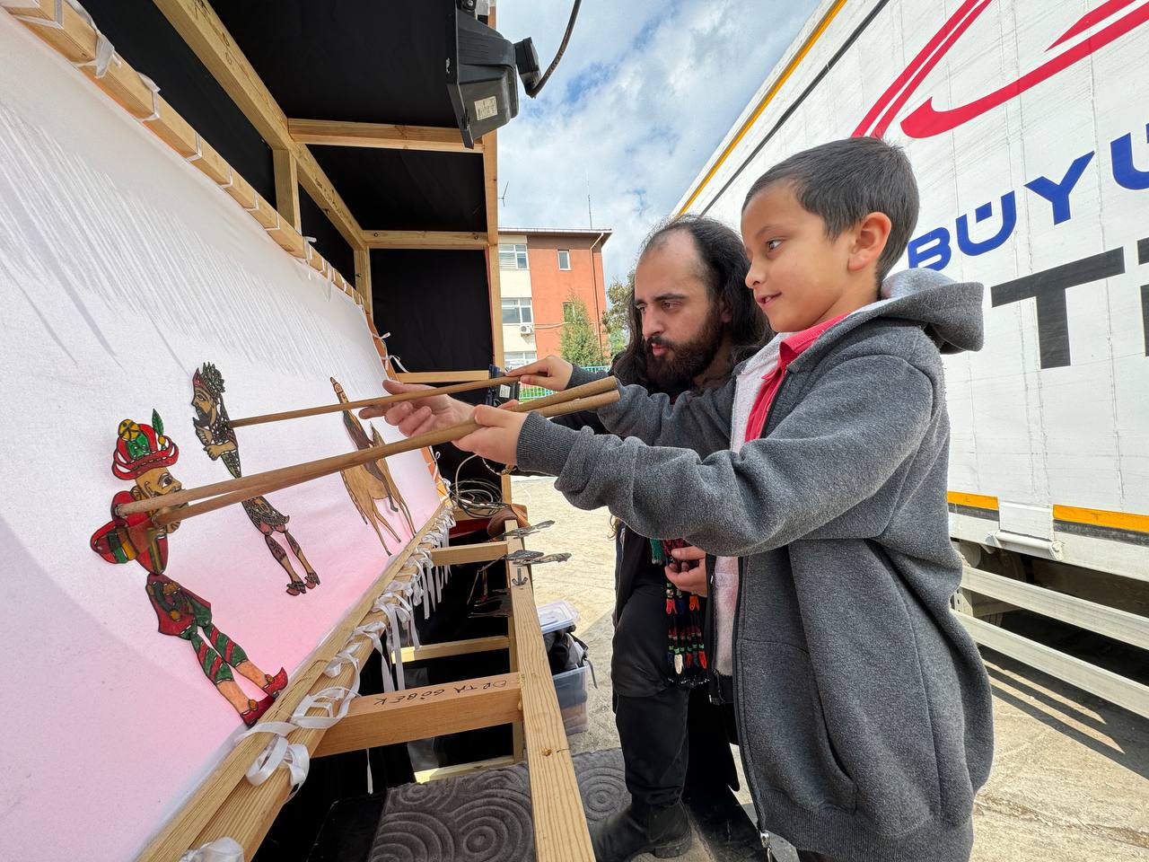 Kocaeli’de ramazan ayında yolla çıkan “Tır Tiyatrosu” kırsal mahallelerdeki okullarda öğrencileri geleneksel Türk gölge oyunuyla buluşturuyor