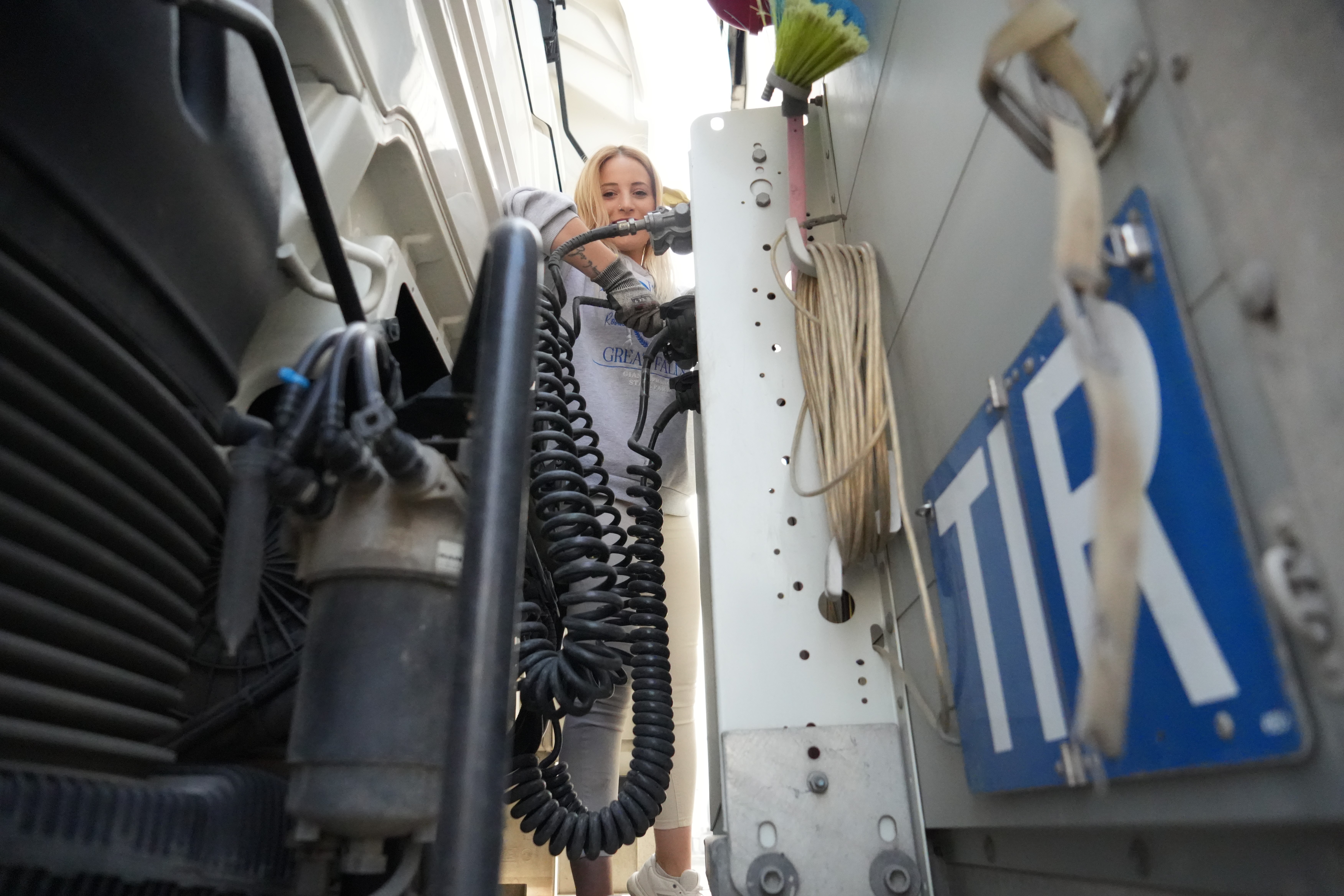 İmge Okur, kadın tır şoförü olmanın zorluklarını da anlatarak, "Yolda taciz olayları yaşıyorum. Kendisi de tır şoförü olan bir meslektaşım, aracı üzerime sürüp beni bariyerlere çarptırdı. Sonrasında da taciz etmeye devam etti, polisi aramak zorunda kaldım. Beni ölümle tehdit etti" şeklinde konuştu. Umut isimli köpeğinin kendisine güven verdiğini söyleyen Okur, "Yakın mesafe yolculuklarıma genelde yalnız gidiyorum fakat uzak mesafe olduğunda Umut isimli bir köpeğim var, onunla birlikte gidiyoruz. O benim en yakın yol arkadaşım. Kendisi küçük bir şivava aslında ama tehlikeli durumlarda ve gece yatarken havlayarak beni uyandırıyor. Benim için büyük bir güvence oluyor" ifadelerini kullandı.